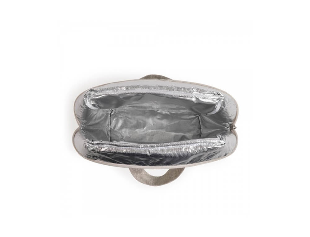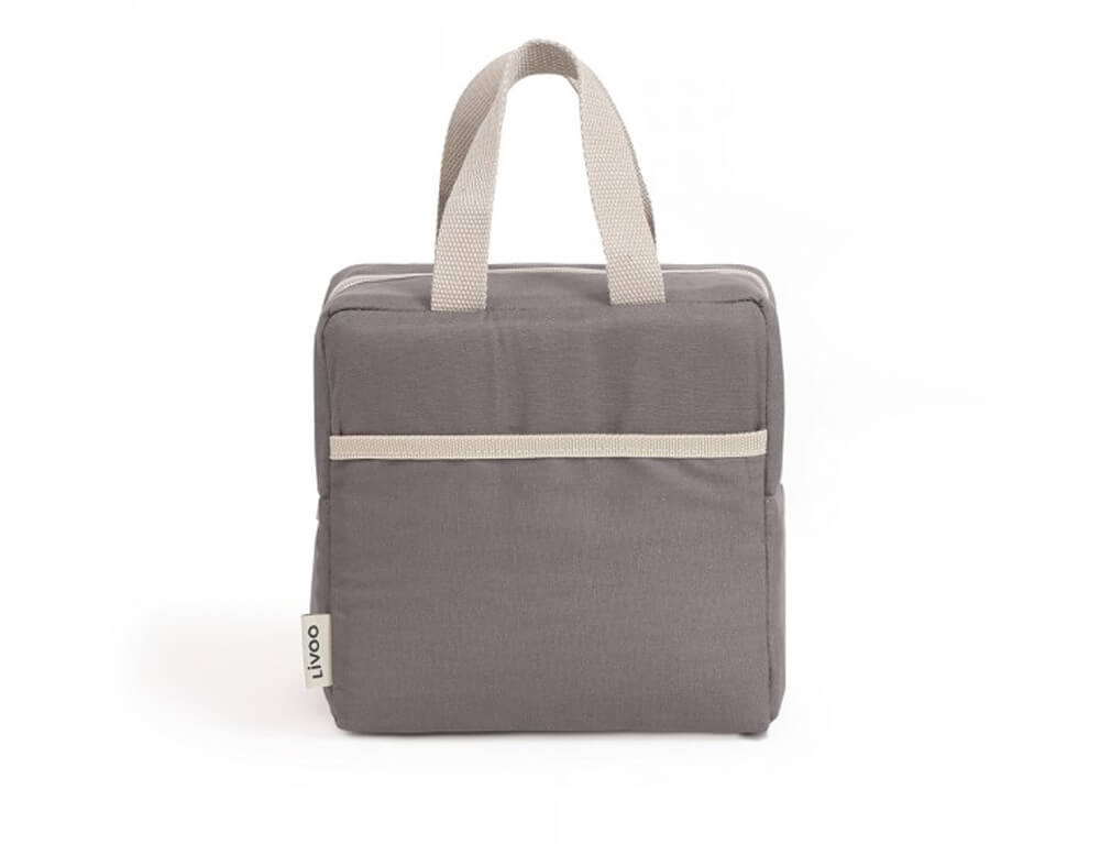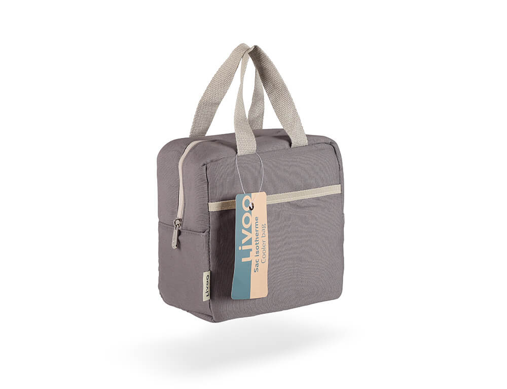 Ισοθερμική τσάντα φαγητού σε γκρι χρώμα και μπεζ λεπτομέρειες από την εταιρία Livoo. Το εξωτερικό της ύφασμα είναι κατασκευασμένο από 100% βαμβάκι ενώ εσωτερικά διαθέτει ισοθερμικό μηχανισμό Hot&Cold© για να διατηρεί την θερμοκρασία του γεύματός σας αμετάβλητη για πολλές ώρες. Κλείνει με φερμουάρ για να είναι πιο εύκολη στη χρήση και τη μεταφορά. Είναι αδιάβροχη και είναι η ιδανική τσάντα για να διατηρείτε το φαγητό σας κρύο ή ζεστό, στην δουλειά, στην βόλτα ή οπουδήποτε αλλού επιθυμείτε.