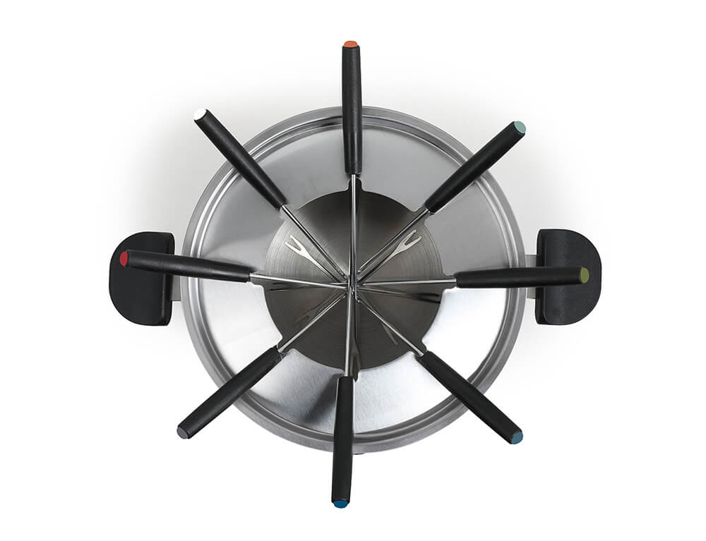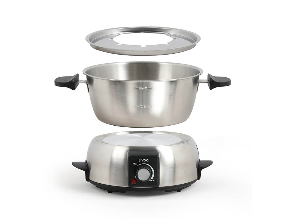 Με τη συσκευή για φοντύ της εταιρείας Livoo μπορείτε να απολαύσετε με τους καλεσμένους σας ένα πεντανόστιμο φοντύ είτε ως σνακ είτε ως επιδόρπιο. Διαθέτει κομψό σχεδιασμό και είναι κατασκευασμένο από ανοξείδωτο ατσάλι. Είναι εξοπλισμένο με ρυθμιζόμενο θερμοστάτη για να επιλέξετε τη μέγιστη θερμοκρασία εάν θέλετε να λιώσετε τυρί ή σοκολάτα σε δευτερόλεπτα ή ακόμη να επιλέξετε την ελάχιστη θερμοκρασία για να το διατηρήσετε ζεστό. Η συσκευή, έχει χωρητικότητα 1.8L, αφαιρούμενο δακτύλιο με θέσεις για 8 πιρούνια και 8 πιρούνια με ανθεκτικές στη θερμότητα λαβές, τα οποία πλένονται στο πλυντήριο πιάτων.