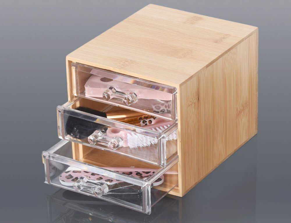 Συρταριέρα Οργάνωσης Μake up Eleganza με 3 συρτάρια, από Ξύλο Μπαμπού, 15.2x12.2x10.3cm - Καφέ