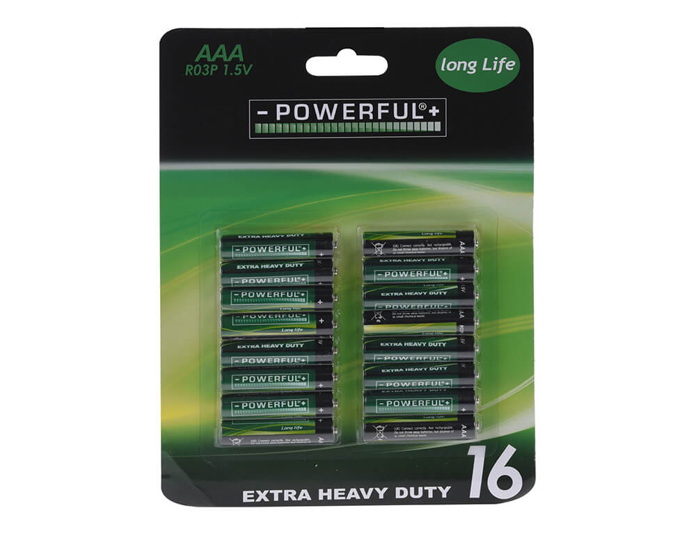 Αλκαλικές μπαταρίες Powerful Extra Heavy Duty - AAA - 1.5V - 16 τεμάχια