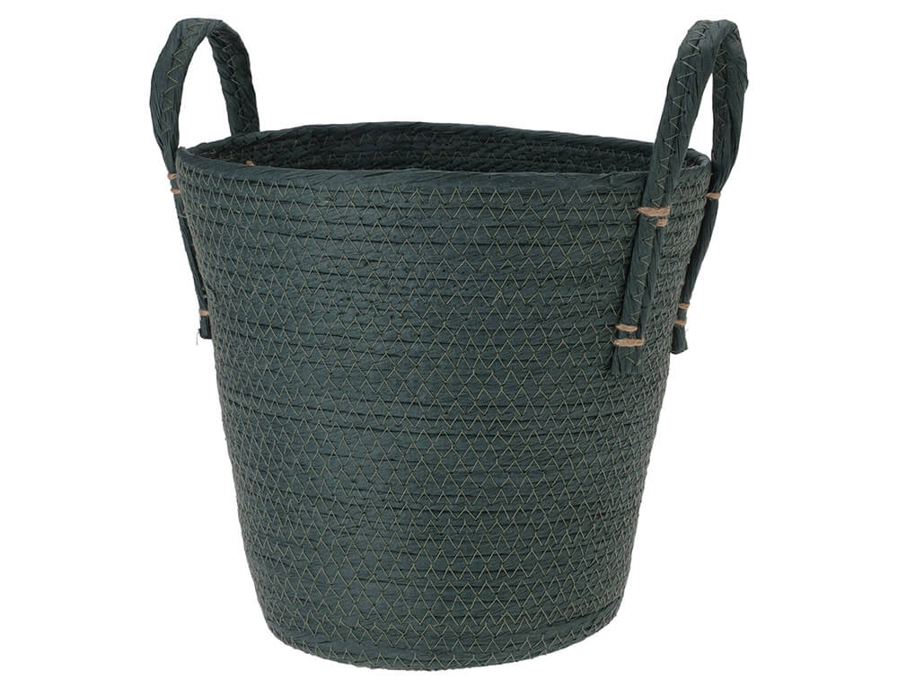 Διακοσμητικό καλάθι σε πράσινο χρώμα με όψη ψάθας. Διαθέτει λαβές για ευκολία στη μετακίνηση. Μπορεί να λειτουργήσει σαν διακοσμητικό στοιχείο σε οποιαδήποτε γωνία του σπιτιού σας αλλα και σαν αποθηκευτικός χώρος. Ιδανικό για να κρατήσει οργανωμένα τα μικροαντικείμενα, τα περιοδικά και ότι άλλο φανταστείτε, δίνοντας παράλληλα μια φρέσκια ανάσα στο χώρο σας.