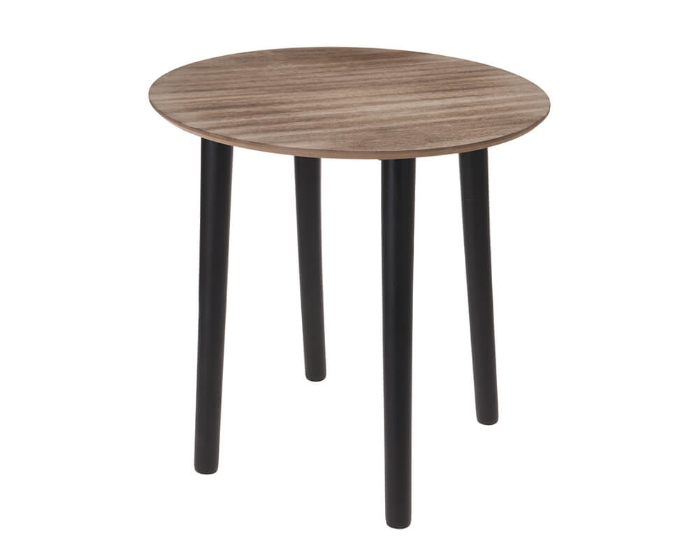Το βοηθητικό τραπεζάκι σαλονιού είναι ιδανικό για τοποθέτηση στο πλάι του καναπέ αλλά και σε διαφορετικά σημεία του σπιτιού προσφέροντας επιπλέον χώρο για την τοποθέτηση διακοσμητικών ή άλλων μικροαντικειμένων. Είναι στρογγυλό και κατασκευασμένο από MDF (ινοσανίδα), ένα παράγωγο ξύλου από κομμάτια, ίνες και υπολείμματα ξύλου. Διαθέτει 4 πόδια από ξύλο πεύκου, για περισσότερη σταθερότητα.