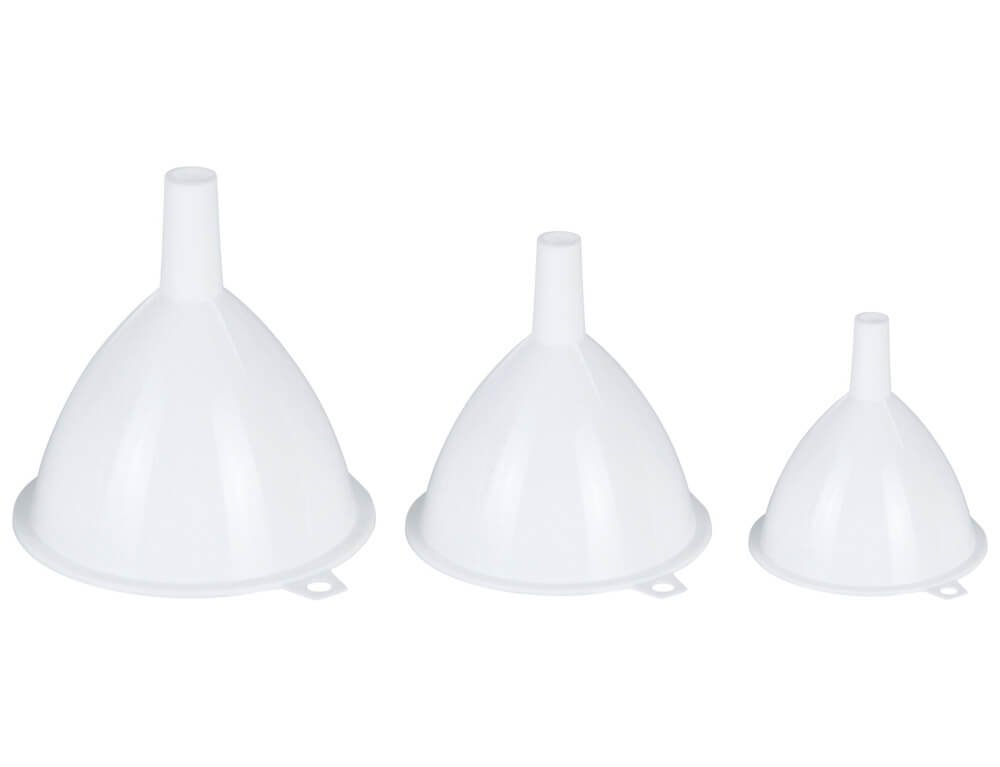 Χωνί κουζίνας κατάλληλο για καθημερινή χρήση. Μπορείτε εύκολα να μεταγγίζετε υγρά, χωρίς τον κίνδυνο διαρροών. Σετ των 3 τεμαχίων.