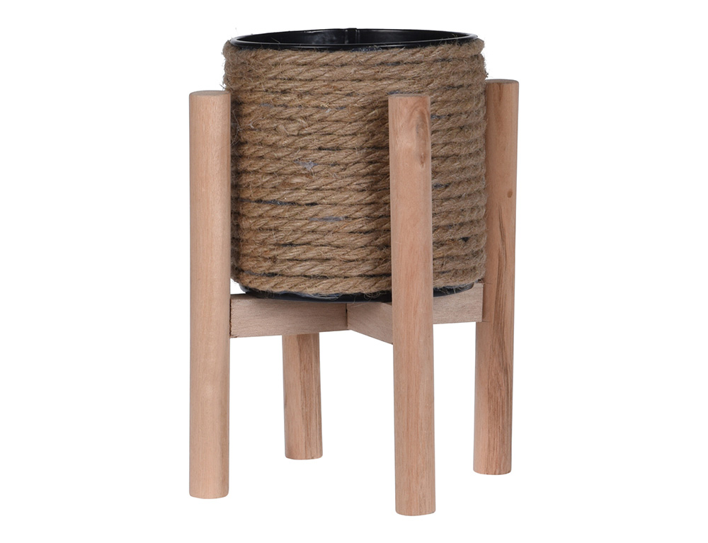 Κασπώ κατάλληλο για επιτραπέζια ή επιδαπέδια τοποθέτηση. Είναι κατασκευασμένο από μέταλλο και περιβάλλεται από σχοινί σε φυσική απόχρωση. Τοποθετήστε στο εσωτερικό του λουλούδια που θα χαρίσουν χρώμα στην διακόσμηση του χώρου σας.