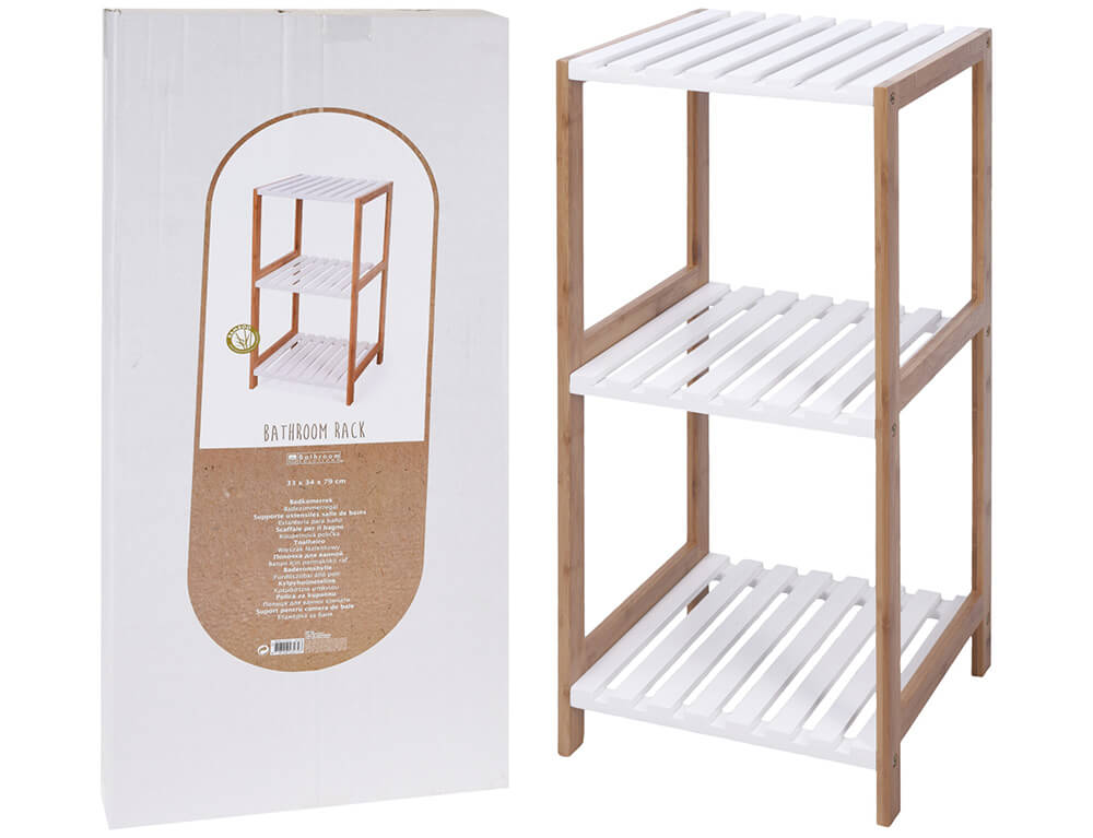 Επιδαπέδια ραφιέρα μπάνιου Bathroom Solutions Ξύλο Μπαμπού, με 3 ράφια, 33x34x79cm