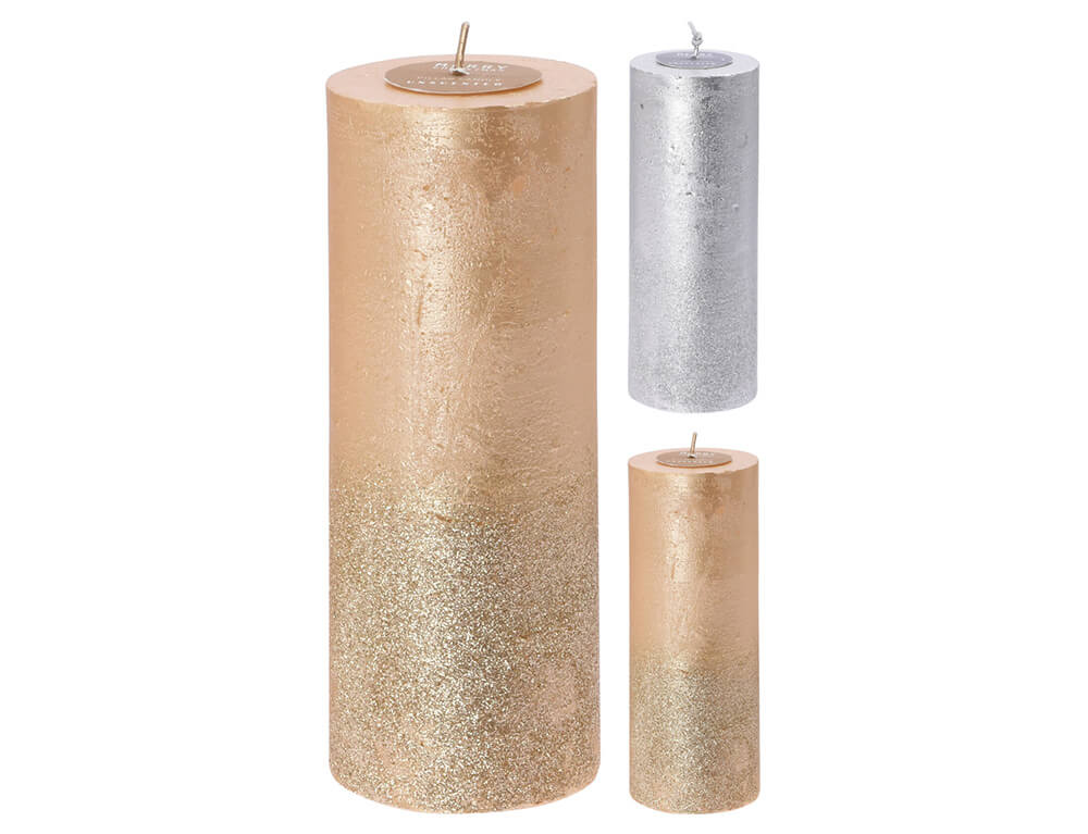 Kερί pillar με γκλίτερ 7x17cm, σε 2 επιλογές χρώματος