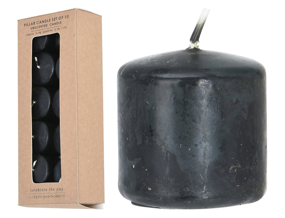 Σετ κεριά 3.8x3.8cm - 10 τεμάχια, Μαύρα