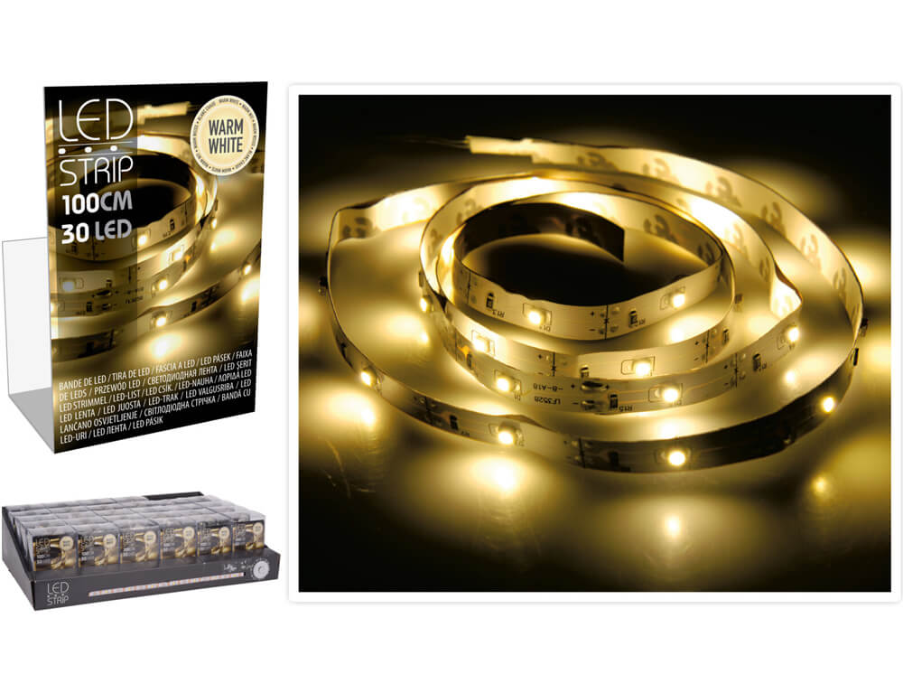 Ταινία LED - 1 Μέτρο, 30 LED φωτάκια, με μπαταρία - Θερμό λευκό