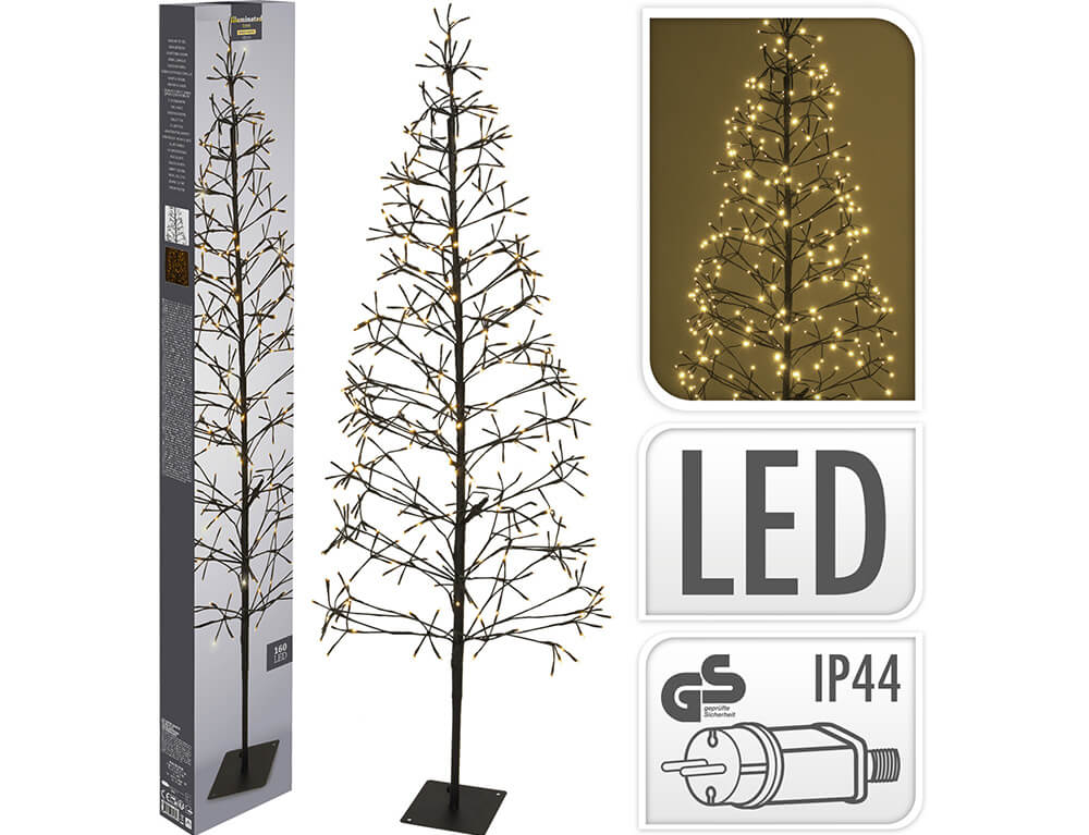 Δημιουργήστε μια ξεχωριστή, ζεστή ατμόσφαιρα στο εσωτερικό ή στο εξωτερικό του σπιτιού σας με το διακοσμητικό δέντρο με φωτισμό LED. Διαθέτει 160 φωτάκια LED σε θερμό λευκό χρώμα, 9 επίπεδα κλαδιών και μεταλλική βάση για καλύτερη σταθερότητα. Λειτουργεί με ρεύμα από αντάπτορα σε πρίζα 220 έως 240 V και διαθέτει καλώδιο ρεύματος μήκους 5 m με προστασία εξωτερικού χώρου IP44.
