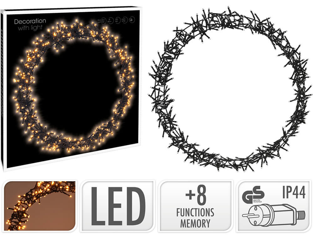 Στεφάνι με 400 φωτάκια LED - 3 Μέτρα σύνδεσης , Kανονική Διάταξη, με χειριστήριο, 8 προγράμματα, Μαύρο καλώδιο PVC και διάμετρο 48cm - Θερμό Λευκό