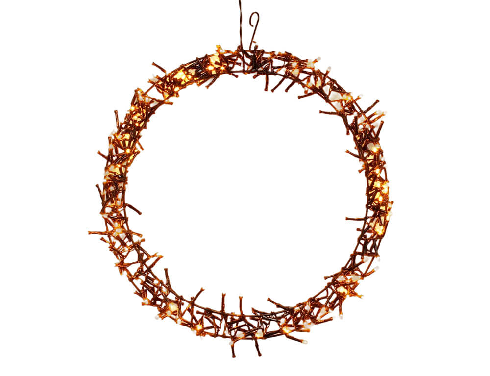Στεφάνι με 400 φωτάκια LED - 3 Μέτρα σύνδεσης , Kανονική Διάταξη, με χειριστήριο, 8 προγράμματα, Μαύρο καλώδιο PVC και διάμετρο 48cm - Θερμό Λευκό