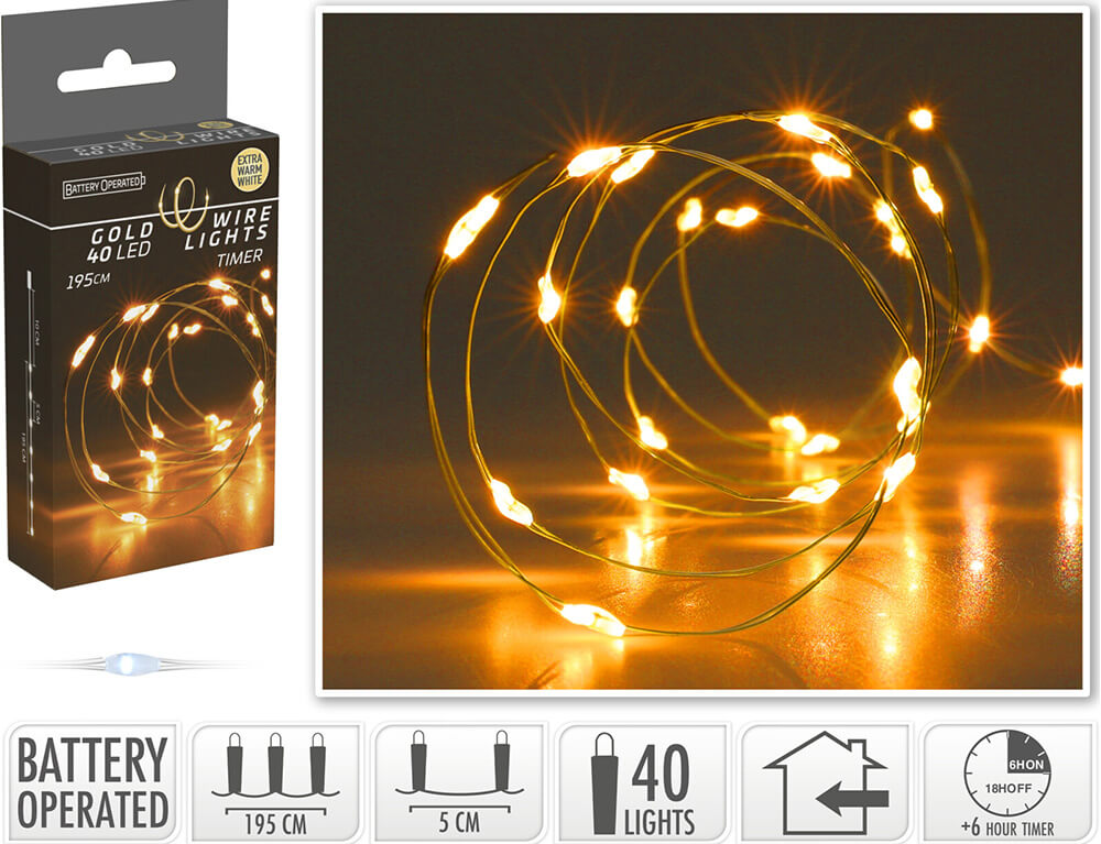Deco 40 Φωτάκια MicroLED - 1.95 Μέτρα + 10 Εκατοστά σύνδεσης , με χρονοδιακόπτη, Χρυσό συρμάτινο καλώδιο - Θερμό λευκό