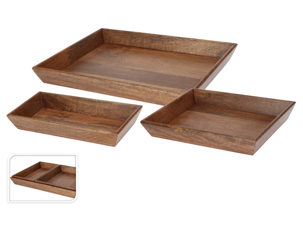 Σετ ξύλινος διακοσμητικός δίσκος Mango wood, Walnut - 3 τεμάχια