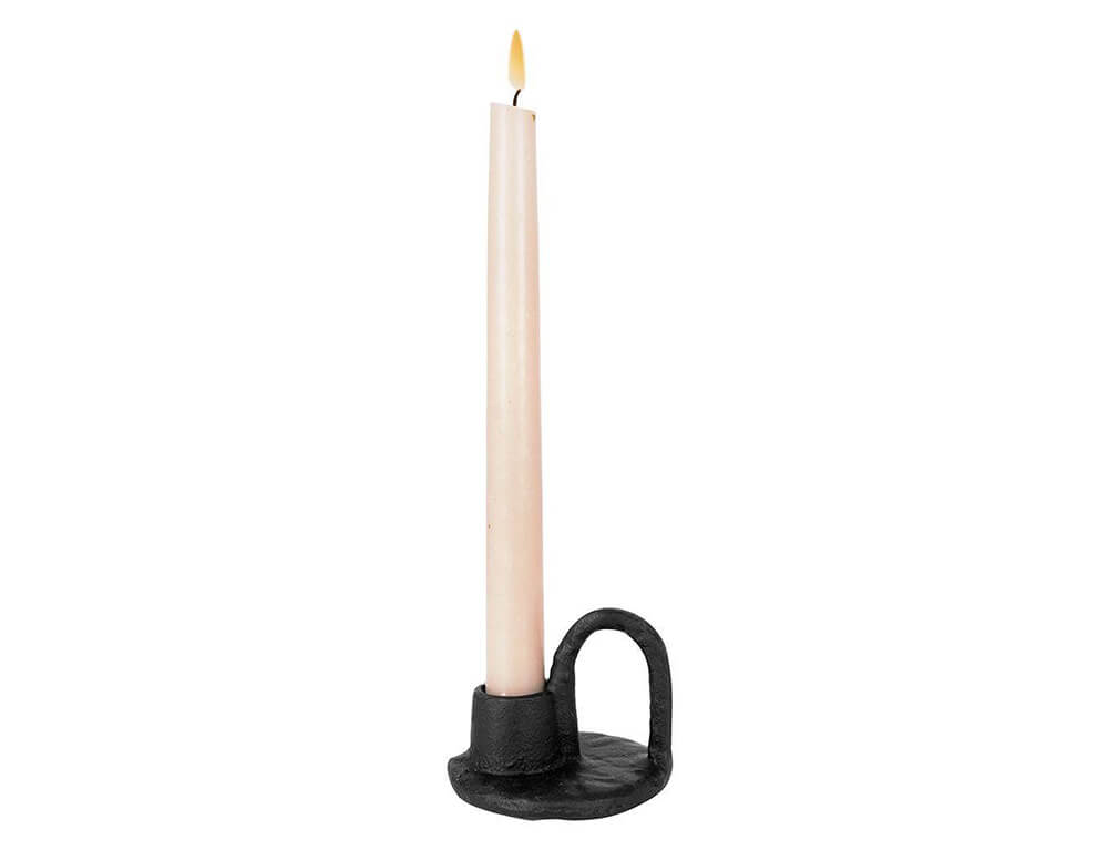 Ένα ιδιαίτερο κηροπήγιο για ένα μακρύ κερί. Ταιριάζει σε μακρύ κερί μέγιστης διαμέτρου 2 cm. Είναι κατασκευασμένο από μαύρο αλουμίνιο υψηλής ποιότητας. Το κηροπήγιο έχει στρογγυλή βάση που εξασφαλίζει σταθερότητα και διαθέτει άνετη λαβή για εύκολη μεταφορά. Ταιριάζει τέλεια σε κάθε στυλ διακόσμησης. Τοποθετήστε το στην τραπεζαρία ή στο σαλόνι σας για να δημιουργήσετε μια πιο ζεστή και ευχάριστη ατμόσφαιρα και να κλέψετε τις εντυπώσεις των καλεσμένων σας.