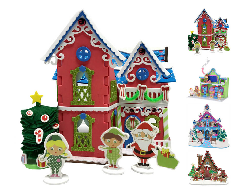 Μαγευτικό χριστουγεννιάτικο σπίτι για να φτιάξετε μόνοι σας. Αυτό το διασκεδαστικό σετ «φτιάξ' το μόνος σου» αποτελείται από διάφορα σπίτια και φιγούρες με τα οποία μπορείς να φτιάξεις το δικό σου χωριό σε χρόνο μηδέν. Η κατασκευή θα χαρίσει στο παιδί ατέλειωτες ώρες παιχνιδιού και διάδρασης αλληλεπιδρώντας μαζί του. Τα κομμάτια είναι κατασκευασμένα από αφρώδες χαρτί και δεν υπάρχει κίνδυνος τραυματισμού κατά τη συναρμολόγιση. Διατίθεται σε 4 σχέδια, όπου το κάθε σχέδιο αποτελεί και μια διαφορετική παράσταση και η επιλογή γίνεται τυχαία. Ο αριθμός των κομματιών για κάθε σχέδιο διαφέρει.
