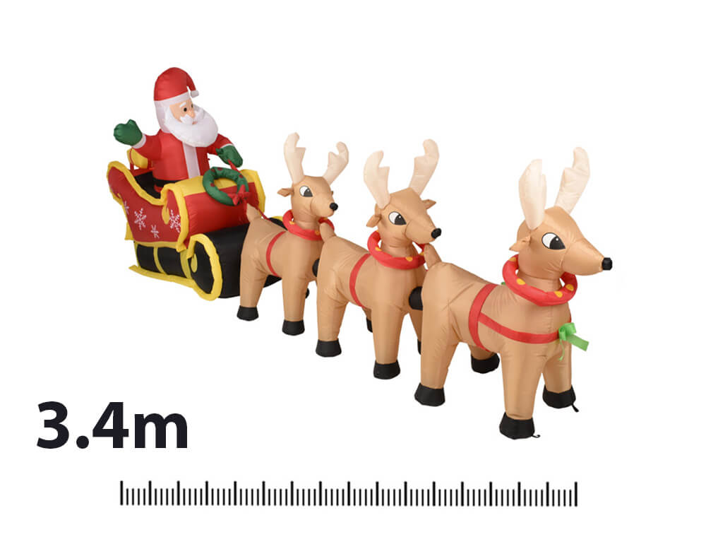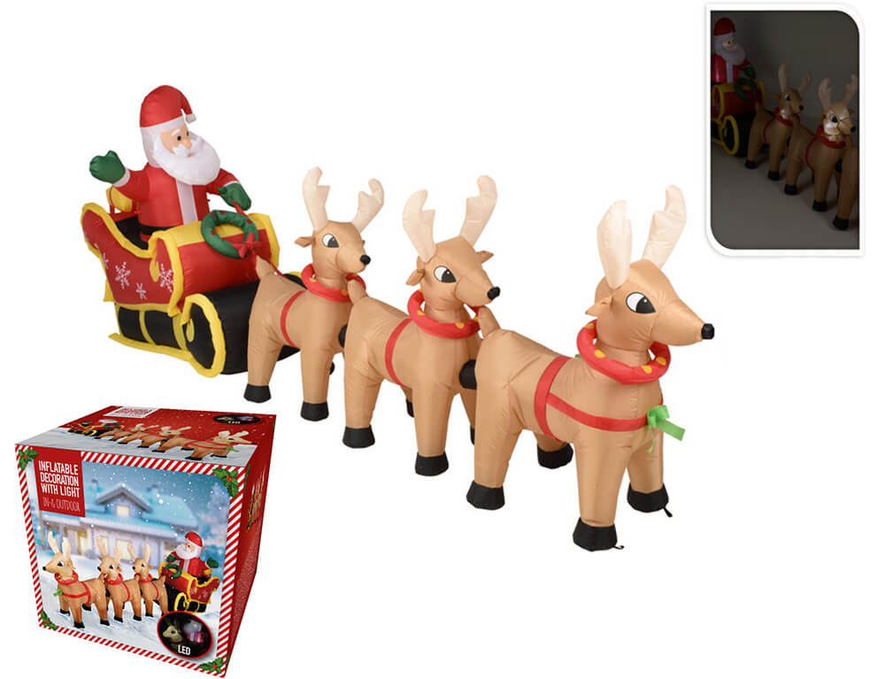 Δημιουργήστε την τέλεια χριστουγεννιάτικη διακόσμηση και ξεχωρίστε από τα συνηθισμένα με τον Χριστουγεννιάτικο φουσκωτό Άγιο Βασίλη σε έλκηθρο με ταράνδους με φωτισμό LED 1.2m.
