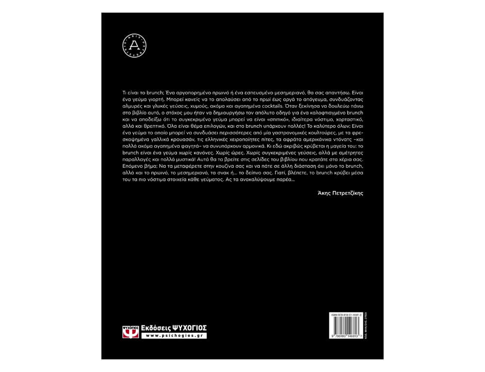 Τι είναι το brunch; Ένα αργοπορημένο πρωινό ή ένα εσπευσμένο μεσημεριανό, θα σας απαντήσω. Είναι ένα γεύμα-γιορτή. Μπορεί κανείς να το απολαύσει από το πρωί έως αργά το απόγευμα, συνδυάζοντας αλμυρές και γλυκές γεύσεις, χυμούς, ακόμα και αγαπημένα cocktails. Όταν ξεκίνησα να δουλεύω πάνω στο βιβλίο αυτό, ο στόχος μου ήταν να δημιουργήσω τον απόλυτο οδηγό για ένα καλοφτιαγμένο brunch και να αποδείξω ότι –το συγκεκριμένο γεύμα– μπορεί να είναι «σπιτικό», ιδιαίτερα νόστιμο, χορταστικό, αλλά και θρεπτικό. Όλα είναι θέμα επιλογών και στο brunch υπάρχουν πολλές! Το καλύτερο όλων; Είναι ένα γεύμα το οποίο μπορεί να συνδυάσει περισσότερες από μία γαστρονομικές κουλτούρες, με τα φρεσκοψημένα γαλλικά κρουασάν, τις ελληνικές χειροποίητες πίτες, τα αφράτα αμερικάνικα ντόνατς –και πολλά ακόμα αγαπημένα φαγητά– να συνυπάρχουν αρμονικά. Κι εδώ ακριβώς κρύβεται η μαγεία του: το brunch είναι ένα γεύμα χωρίς κανόνες. Χωρίς ώρες. Χωρίς συγκεκριμένες γεύσεις, αλλά με αμέτρητες παραλλαγές και πολλά μυστικά! Αυτά θα τα βρείτε στις σελίδες του βιβλίου που κρατάτε στα χέρια σας. Επόμενο βήμα; Να τα μεταφέρετε στην κουζίνα σας και να πάτε σε άλλη διάσταση όχι μόνο το brunch, αλλά και το πρωινό, το μεσημεριανό, το σνακ ή… το δείπνο σας. Γιατί, βλέπετε, το brunch κρύβει μέσα του τα πιο νόστιμα στοιχεία κάθε γεύματος. Ας τα ανακαλύψουμε παρέα…