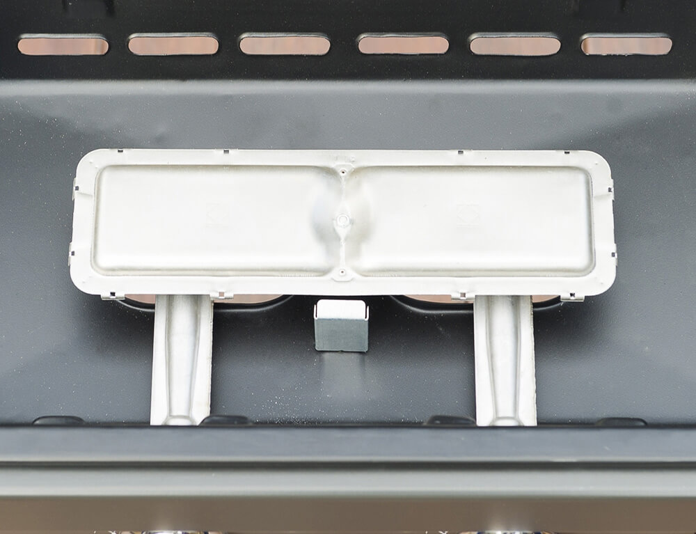 Χάρη στον διπλό καυστήρα από αλουμιωμένο χάλυβα ισχύος 7,5 kW επιτρέπεται η ανεξάρτητη χρήση στην μισή ή σε ολόκληρη την επιφάνεια της σχάρας, ώστε να μπορείτε να μαγειρέψετε διαφορετικούς τύπους τροφίμων στη κατάλληλη θερμοκρασία. Η επιφάνεια ψησίματος αποτελείται από δύο επισμαλτωμένες ατσάλινες σχάρες που μπορούν να εξυπηρετήσουν έως και 10 άτομα. Επίσης ο διαχύτης χρησιμεύει στην ομοιόμορφη κατανομή της θερμότητας σε ολόκληρη την επιφάνεια των 2100 cm2.