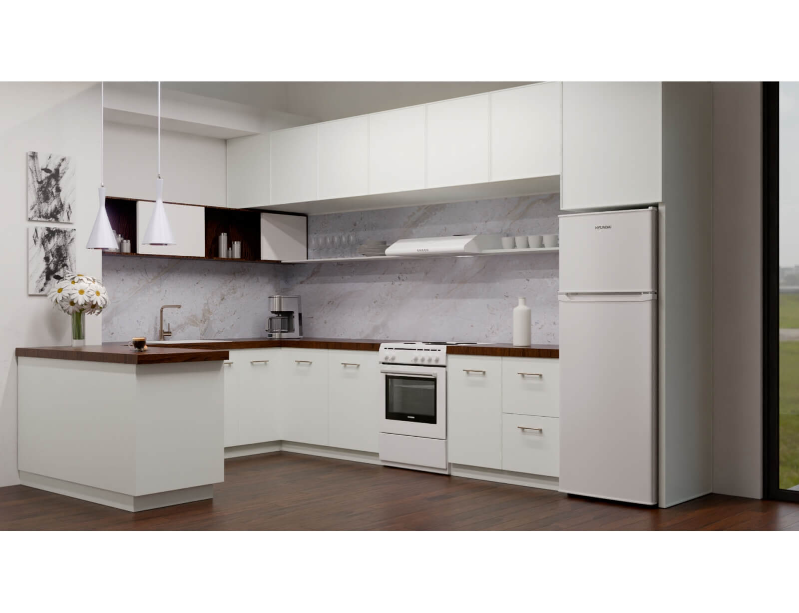 Ψυγείο δίπορτο Hyundai HRD23-3233W/NF σε λευκό χρώμα, χωρητικότητα τροφίμων που φθάνει τα 340 λίτρα και υψηλή απόδοση E για εξοικονόμηση ενέργειας.