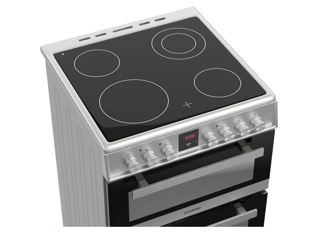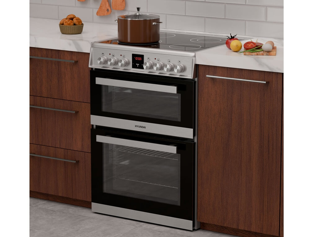 Κουζίνα Hyundai HCV22-70L60N-DUAL/X με δύο φούρνους για μεγαλύτερη ευελιξία με χωρητικότητα 61 λίτρα και 37 λίτρα, ενεργειακή κλάση Α και κεραμικές εστίες μαγειρέματος για ταχύτατο μαγείρεμα.