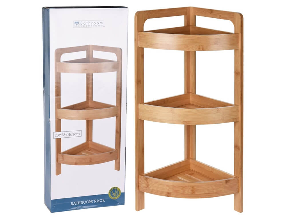 Αυτή η πολυλειτουργική ραφιέρα μπάνιου 3 επιπέδων από την Bathroom Solutions είναι κατασκευασμένη από φιλικό προς το περιβάλλον και ανθεκτικό μπαμπού, καθιστώντας την τέλεια προσθήκη στο μπάνιο σας.