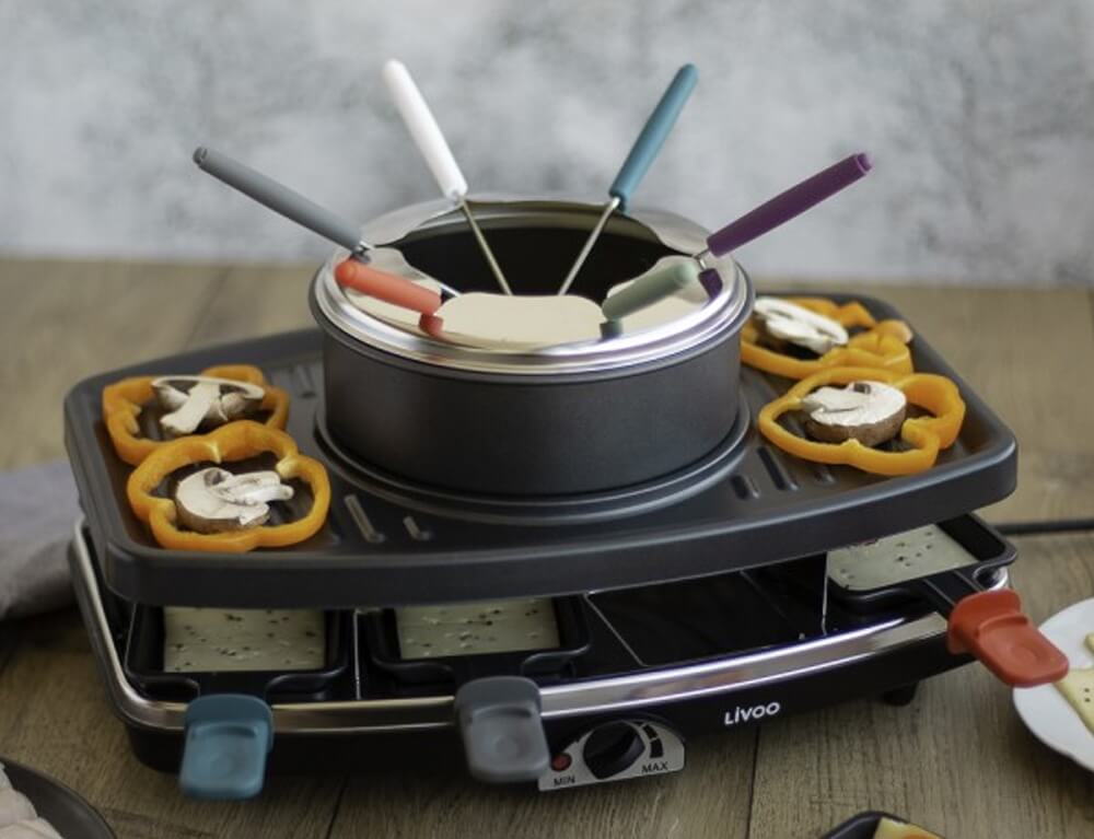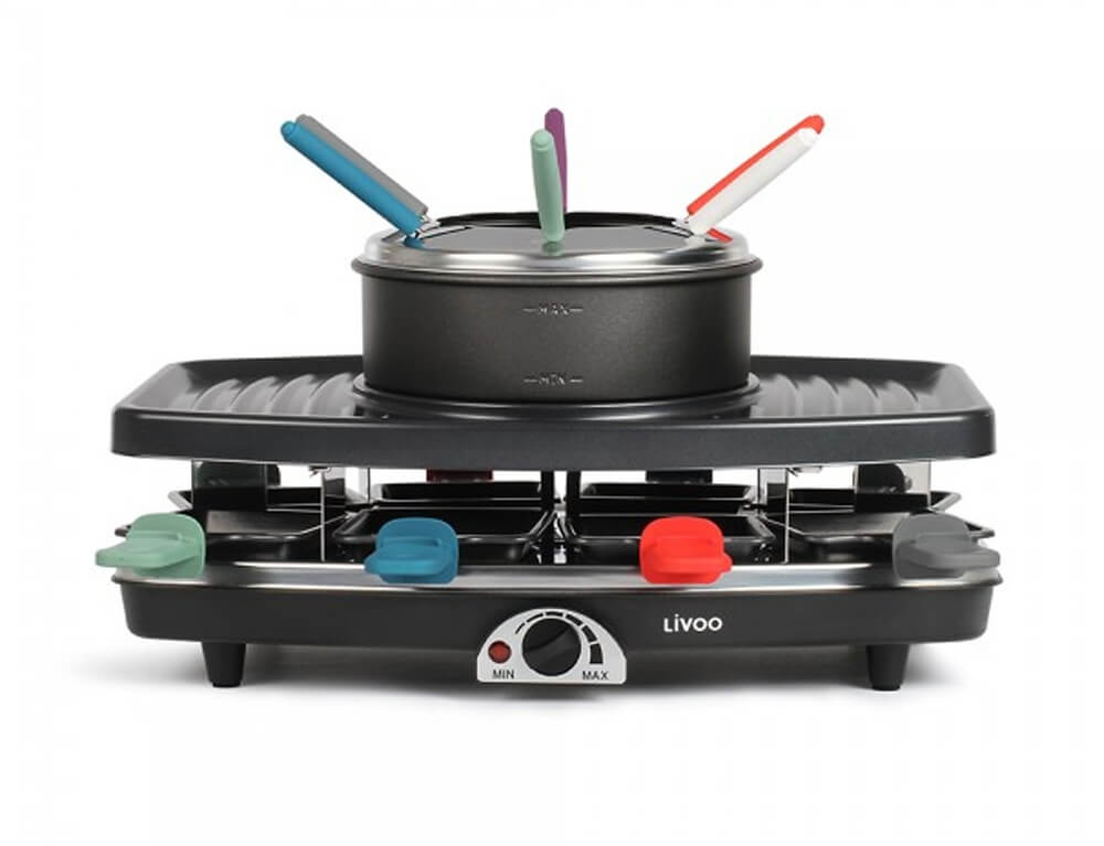 Γκριλιέρα, Raclette, Συσκευή για Φοντύ Livoo (DOC233) με ισχύ 1100W, ρυθμιζόμενο θερμοστάτη, χωρητικότητα 1.6L και επιφάνεια ψησίματος 40 x 26,5cm