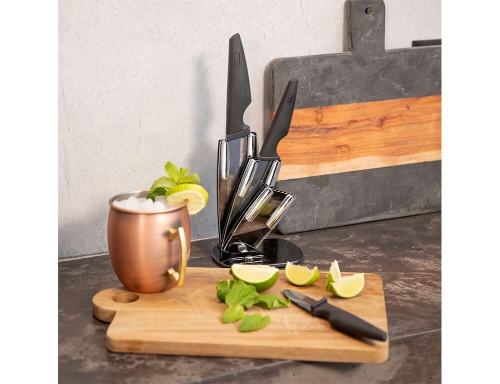 Το σετ μαχαιριών με βάση της εταιρείας Livoo είναι ιδανικό για κάθε κουζίνα, καθώς καλύπτει τις ανάγκες σας στην προετοιμασία φαγητού και κοπής των τροφίμων σας. Η βάση που τα συνοδεύει σας επιτρέπει να εξοικονομείτε χώρο στον πάγκο εργασίας σας ώστε να είναι πάντα τακτοποιημένα, ενώ παράλληλα εξασφαλίζει την ασφαλή αποθήκευσή τους αποφεύγοντας φθορές που μπορεί να δημιουργηθούν κατά την αποθήκευσή τους σε ένα συρτάρι ή ντουλάπι. Είναι κατασκευασμένο από κεραμικό υλικό, το οποίο προσφέρει καλύτερη ποιότητα κοψίματος, η λεπίδα του παραμένει αιχμηρή για μεγάλη περίοδο και δεν επηρεάζει καθόλου τη γεύση των υλικών. Είναι ανθεκτικό στη διάβρωση και αντέχει στα οξέα. Χάρη στο κεραμικό υλικό από το οποίο είναι φτιαγμένο, είναι ιδιαίτερα ελαφρύ.