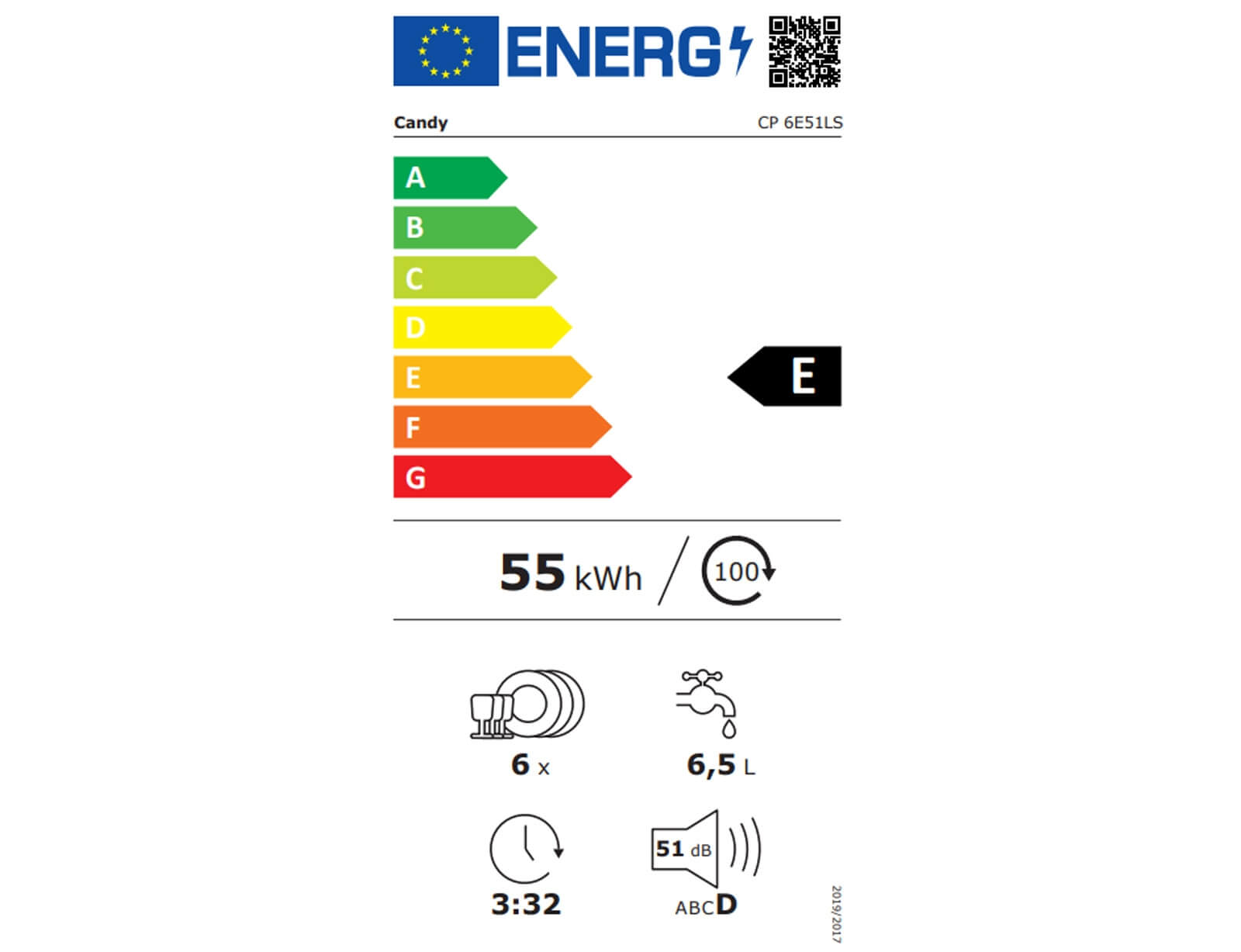 | Κατανάλωση ενέργειας ανά κύκλο | 0,55 kWh |