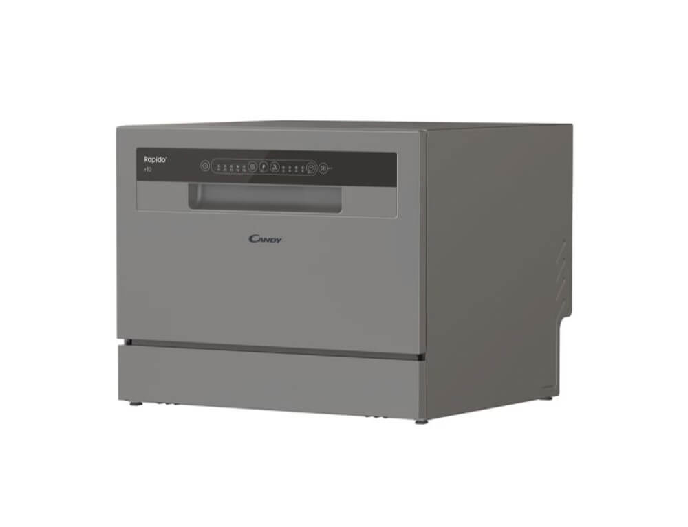 Το Candy Rapido',είναι το μικρό πλυντήριο πιάτων άνω πάγκου που παρέχει την τέλεια λύση εάν δυσκολεύεστε να έχετε ένα μεγάλο πλυντήριο πιάτων. Το μικρό του μέγεθος ταιριάζει απόλυτα και στους πιο μικροσκοπικούς χώρους της κουζίνας και έχει βελτιωθεί ώστε να είναι πιο αποτελεσματικό και πιο έξυπνο, διαθέτοντας έναν αριθμό γρήγορων κύκλων και λειτουργιών που στοχεύουν στην απλοποίηση της καθημερινότητάς σας.