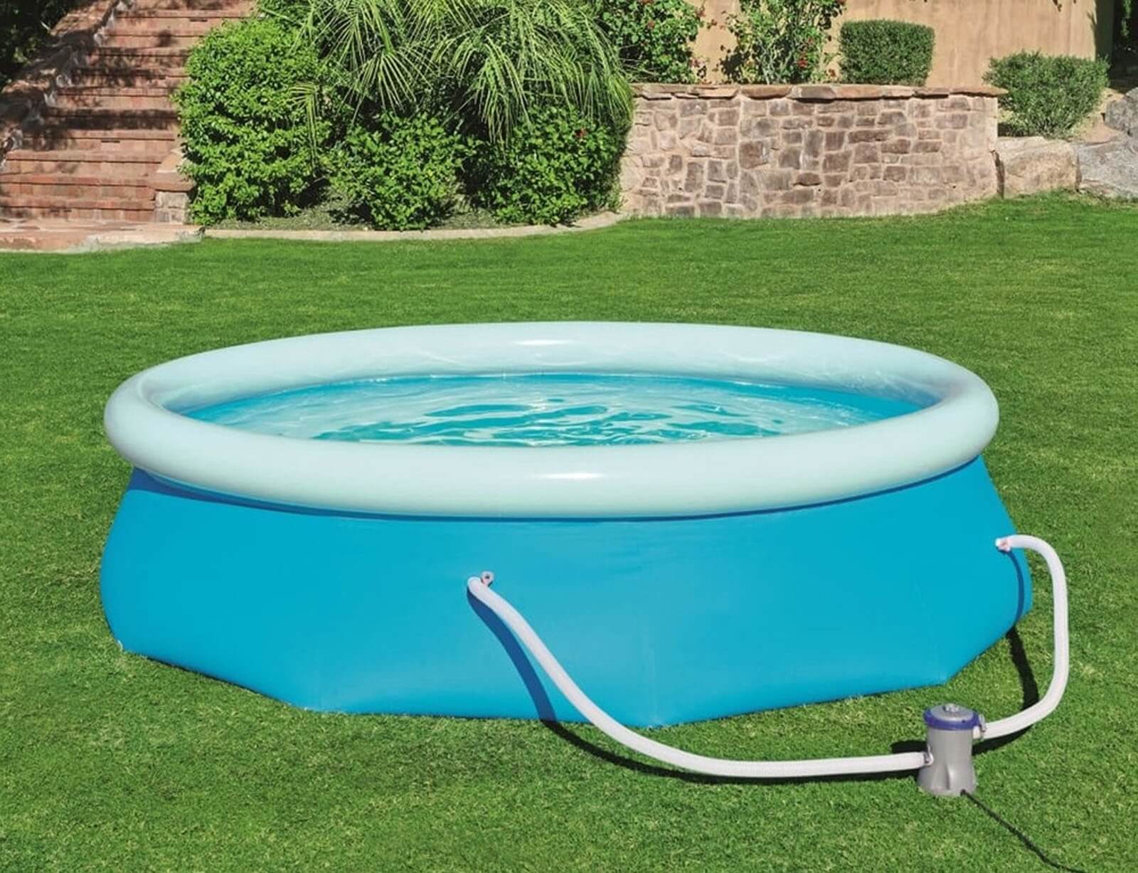 Ζήστε την απόλυτη καλοκαιρινή δροσιά με την οικογενειακή φουσκωτή πισίνα Bestway Fast Set! Ιδανική για όλη την οικογένεια, με χωρητικότητα 3.638 λίτρα και διάμετρο 305 cm, προσφέρει άπλετο χώρο για παιχνίδι, δροσιά και χαλάρωση για όλη την οικογένεια. Κατασκευασμένη από ανθεκτικό υλικό Tritech™ τριπλής στρώσης, διαθέτει πλευρικά τοιχώματα βαρέως τύπου, με αυξημένη αντοχή στην υπεριώδη ακτινοβολία και το χλώριο. Η εγκατάσταση είναι πανεύκολη, απλώς φουσκώστε το επάνω δαχτυλίδι, γεμίστε με νερό και σε λίγα λεπτά θα είναι έτοιμη. Περιλαμβάνεται αντλία φίλτρου με παροχή 1249 λίτρα/ώρα, που εξασφαλίζει καθαρό και υγιεινό νερό καθ’ όλη τη διάρκεια της χρήσης. Επιπλέον, περιλαμβάνει αυτοκόλλητο μπάλωμα επιδιόρθωσης, κατάλληλο για χρήση ακόμα και με γεμάτη πισίνα.