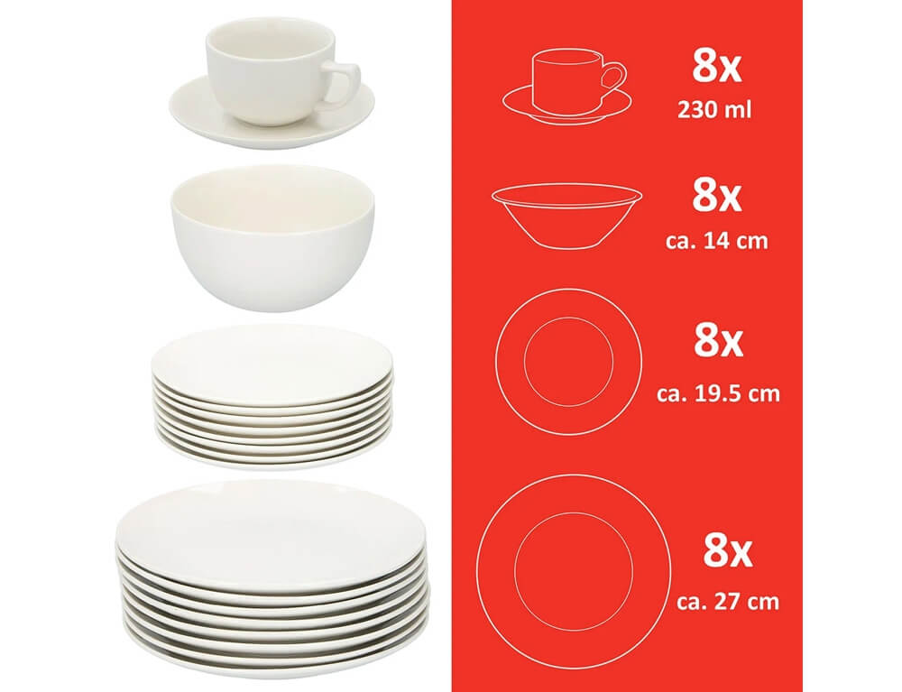 - 8x κούπες και 8 πιατάκια (χωρητικότητα 230ml)