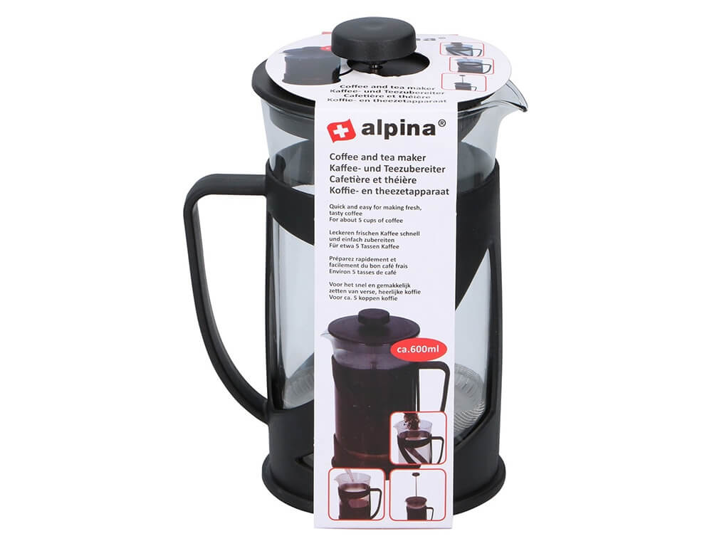 Φτιάξτε τον αγαπημένο σας καφέ ή ρόφημα με την καφετιέρα χειρός της Alpina. Βάλτε στην κανάτα ζεστό νερό και τον καφέ ή το αφέψημα που θέλετε και αφήστε το για λίγα λεπτά. Σκεπάστε με το καπάκι και το έμβολο επάνω και πιέστε να κατέβει το έμβολο σιγά σιγά. Το περιεχόμενο θα σουρωθεί και το ρόφημα σας θα είναι φρέσκο και ζεστό. Διαθέτει στόμιο εκροής, εργονομική λαβή για την αποφυγή καψίματος και κομψή και ανθεκτική θήκη που προστατεύει τη γυάλινη κανάτα και τις επιφάνειες.