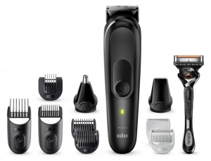 Αποθηκεύετε τη κουρευτική μηχανή σε μια βάση όπου μπορείτε επίσης να αποθηκεύσετε όλα τα αξεσουάρ. Εκτός από τα διαφορετικά τρίμερ, υπάρχουν επίσης 4 χτένες προσάρτησης με τις οποίες μπορείτε να δημιουργήσετε διαφορετικά μήκη μαλλιών. Μπορείτε εύκολα να καθαρίσετε τη συσκευή με τη βούρτσα καθαρισμού.