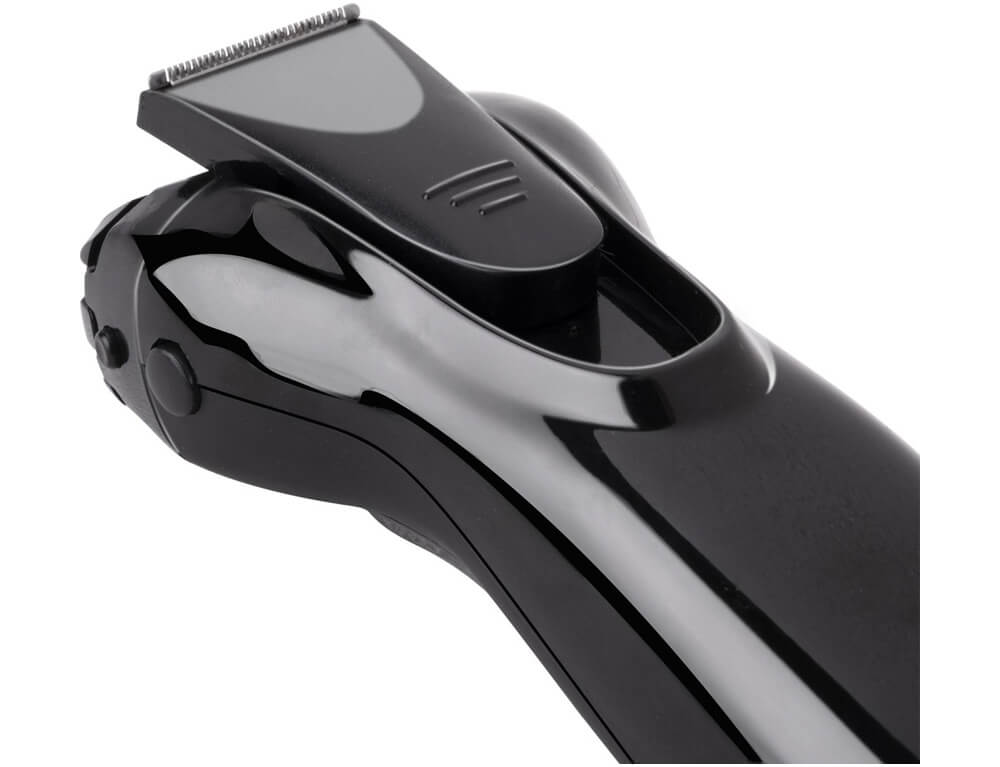 Η ξυριστική μηχανή είναι εξοπλισμένη με διπλό φύλλο. Οι λεπίδες είναι κρυμμένες με ασφάλεια κάτω από ένα φύλλο. Οι κινούμενες λεπίδες ανασηκώνουν τις τρίχες και τις ξυρίζουν κοντά. Χάρη στο σύστημα διπλού ξυρίσματος, η ξυριστική μηχανή δεν λείπει ούτε τρίχα. Είτε έχετε ελαφριά, μεσαία ή βαριά γένια, αυτό το σύστημα ξυρίσματος κάνει το ξύρισμα γρήγορο και άνετο. Θέλετε να κόψετε τακτοποιημένα τις φαβορίτες, τα γένια ή το μουστάκι σας; Αυτό είναι δυνατό με το αναδυόμενο τρίμερ στο πίσω μέρος της ξυριστικής μηχανής. Σύρετε τη κουρευτική μηχανή προς τα πάνω με 1 κίνηση.