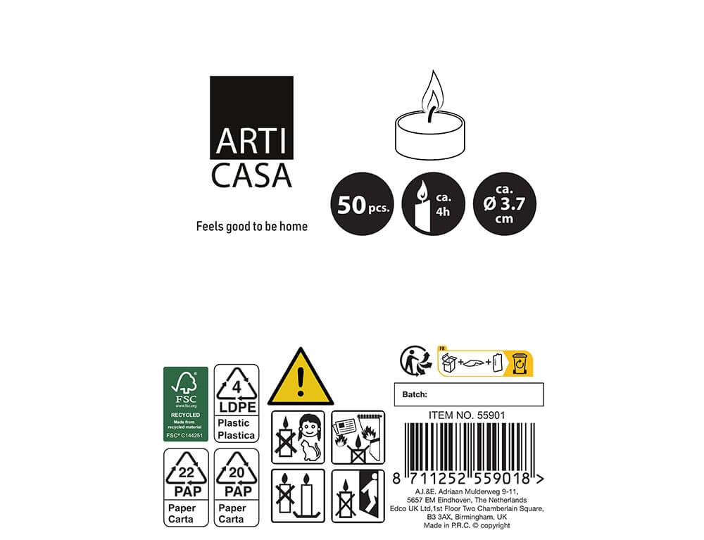 Σετ Διακοσμητικά Κεριά Ρεσώ Articasa με διάρκεια καύσης 4 ώρες και διάμετρο 3.7cm - 50 τεμάχια