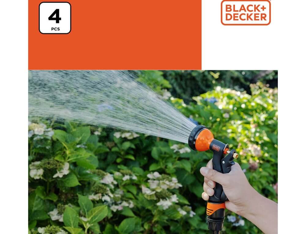 Το πιστόλι νερού Black+Decker με 7 ρυθμίσεις συνιστάται ιδιαίτερα για τους λάτρεις του κήπου. Αυτό το πιστόλι νερού προσφέρει 7 διαφορετικές ρυθμίσεις ψεκασμού, ώστε να μπορείτε εύκολα να κάνετε εναλλαγή μεταξύ του ποτίσματος ευαίσθητων λουλουδιών με λεπτή ομίχλη και του καθαρισμού επίμονων ρύπων με έναν ισχυρό πίδακα από το πιστόλι νερού. Το σετ περιλαμβάνει το πιστόλι ποτίσματος, έναν σύνδεσμο και δύο επιπλέον αξεσουάρ για να διευκολύνουν τις εργασίες σας.