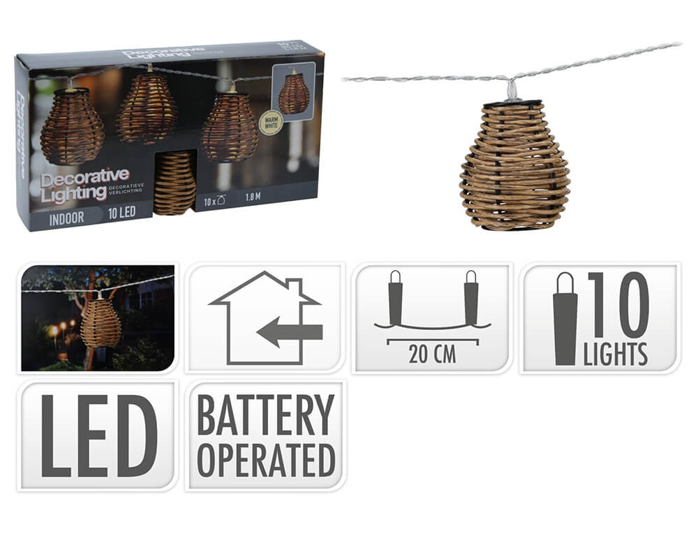 Τα φώτα LED θα είναι μια τέλεια διακόσμηση σε γάμο, πάρτι γενεθλίων, μπάρμπεκιου ή υπαίθριο πάρτι. Διακοσμητική γιρλάντα με 10 LED λαμπτήρες, ιδανική για να κρεμαστεί σε εσωτερικούς και εξωτερικούς χώρους.