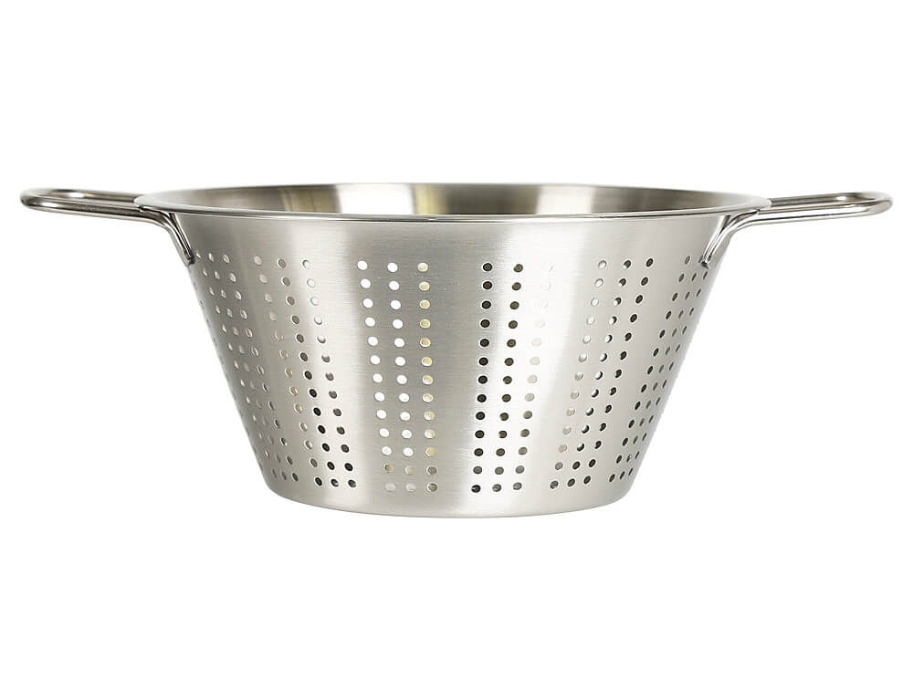 Σουρωτήρι κατασκευασμένο από ανοξείδωτο ατσάλι σε ασημί χρώμα. Έχει διάμετρο 22 εκατοστά και χερούλια για πιο εύκολη χρήση. Ιδιαίτερα χρήσιμο για το πλύσιμο των λαχανικών ή για να σουρώσετε τα ζυμαρικά σας.