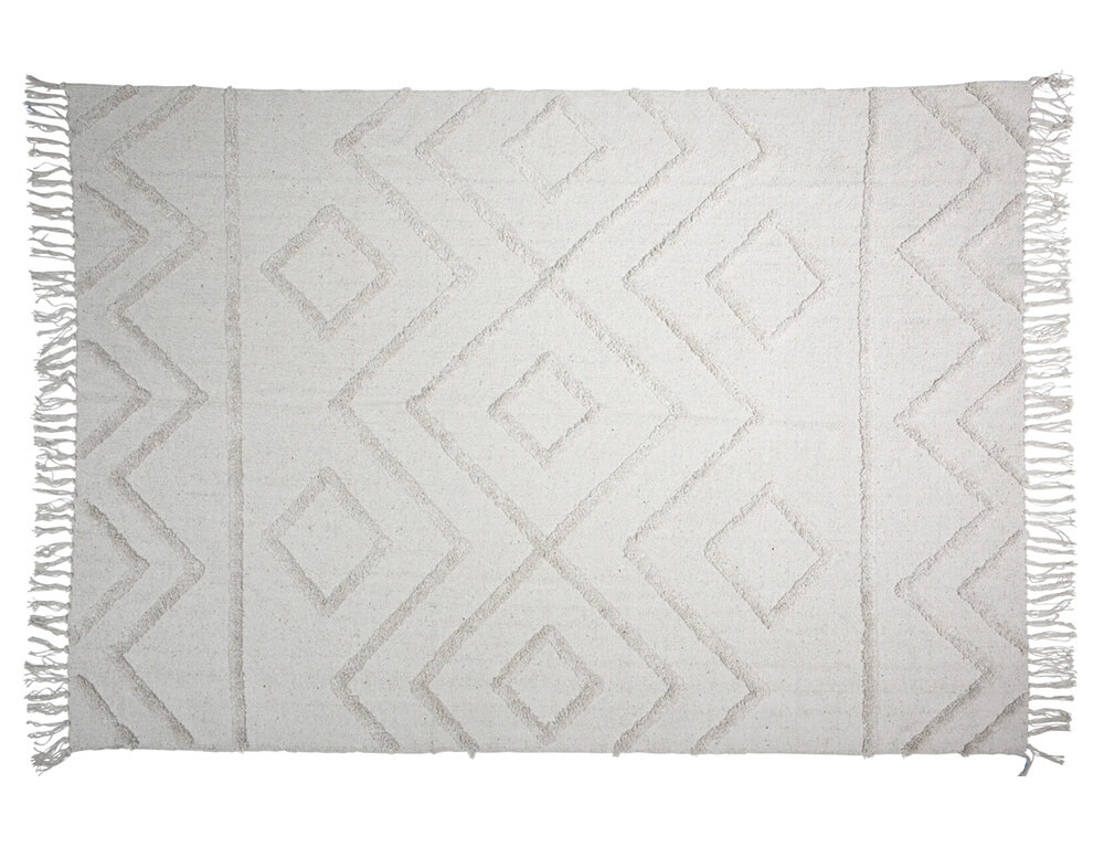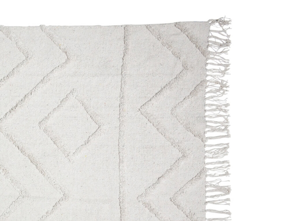 Χαρίστε στο εσωτερικό σας μια μοντέρνα και φυσική πινελιά με το χαλί μας από υφαντή γιούτα σε λευκή και φυσική απόχρωση. Είναι η τέλεια επιλογή για τη διακόσμηση του δωματίου σας, προστατεύοντας παράλληλα τα δάπεδα σας. Τα γεωμετρικά σχέδια και τα κρόσσια στις άκρες θα δώσουν στο χώρο σας μια boho αισθητική. Είναι κατασκευασμένο από βαμβάκι που το καθιστά ιδανικό για χρήση το καλοκαίρι αλλά και για όλες τις εποχές του χρόνου.