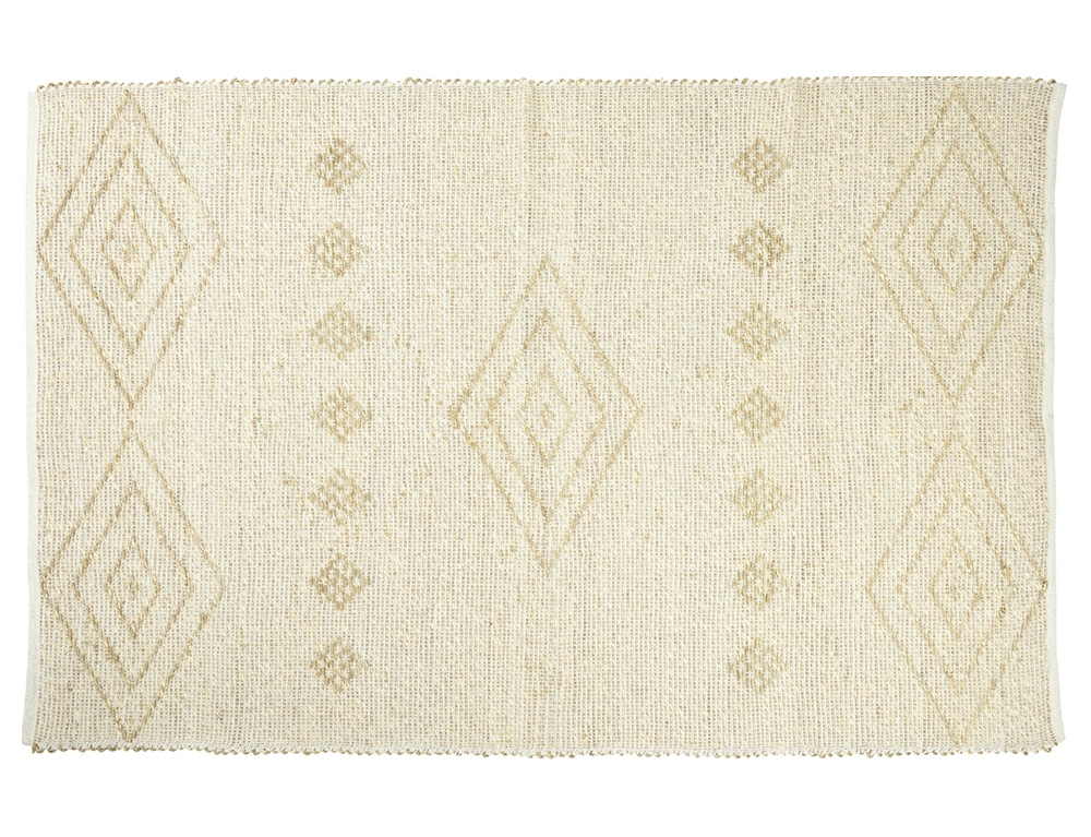 Χαρίστε στο εσωτερικό σας μια μοντέρνα και φυσική πινελιά με το χαλί μας από υφαντή γιούτα σε λευκή και φυσική απόχρωση. Είναι η τέλεια επιλογή για τη διακόσμηση του δωματίου σας, προστατεύοντας παράλληλα τα δάπεδα σας. Τα γεωμετρικά σχέδια και τα κρόσσια στις άκρες θα δώσουν στο χώρο σας μια boho αισθητική. Είναι κατασκευασμένο από βαμβάκι που το καθιστά ιδανικό για χρήση το καλοκαίρι αλλά και για όλες τις εποχές του χρόνου.