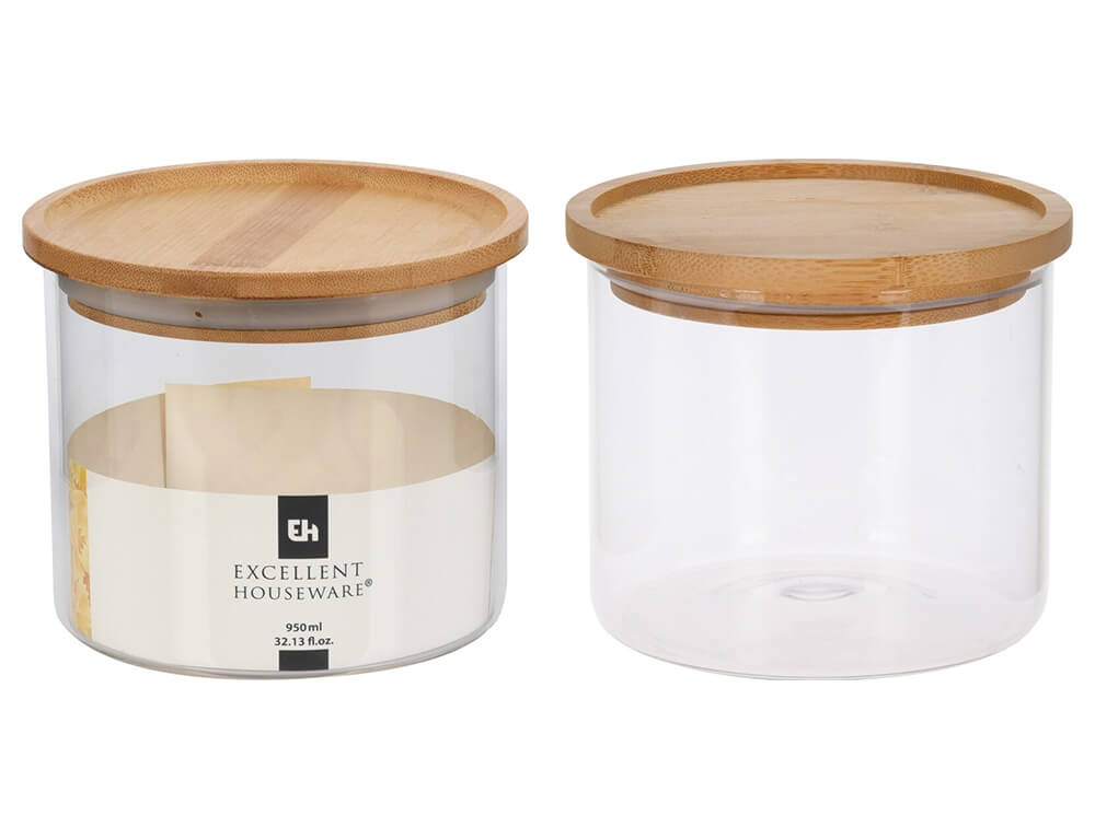Με το γυάλινο βάζο της εταιρείας Excellent Houseware μπορείτε να οργανώσετε την κουζίνα σας και να αποθηκεύσετε τρόφιμα ή τα αγαπημένα σας γλυκίσματα. Το καπάκι του είναι κατασκευασμένο από ξύλο μπαμπού και κλείνει αεροστεγώς, με αποτέλεσμα να μην αλλοιώνονται τα τρόφιμα από την υγρασία, τη μούχλα, τη σκόνη και άλλους ρύπους. Επίσης, το φαγητό σας θα παραμείνει πιο φρέσκο με το αρχικό άρωμα για μεγαλύτερο χρονικό διάστημα. Δεν συνίσταται η χρήση του σε φούρνο μικροκυμάτων ή σε κατάψυξη.