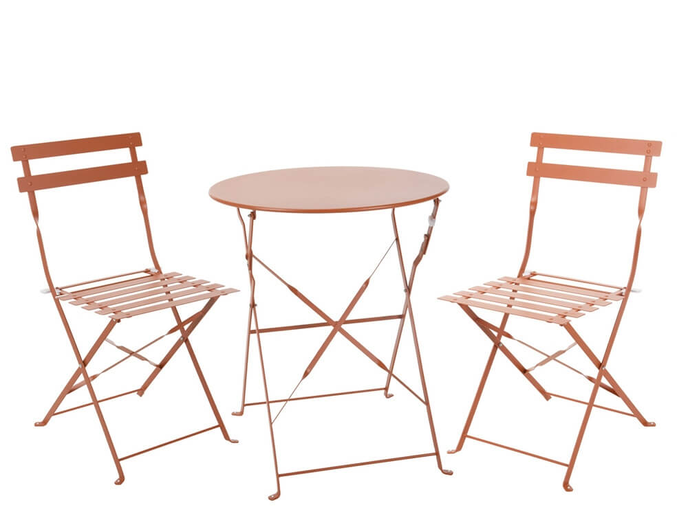 Πτυσσόμενο Σετ Κήπου & Βεράντας με Τραπέζι Bistro και 2 Καρέκλες - Μέταλλο - Terracotta