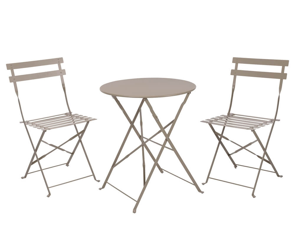 Με αυτό το σετ θα δώσετε χρώμα και θα αναβαθμίσετε τη βεράντα, τον κήπο ή το μπαλκόνι σας και είναι κατάλληλο ακόμα και για τους πιο περιορισμένους χώρους. Το σετ είναι κατασκευασμένο από μέταλλο και είναι ανθεκτικό στο χρόνο και τις καιρικές συνθήκες. Το τραπέζι και οι καρέκλες είναι πτυσσόμενα για να μπορείτε να το μετακινήσετε και να το αποθηκεύσετε με μεγάλη ευκολία, ενώ παράλληλα θα εξοικονομήσετε και χώρο.