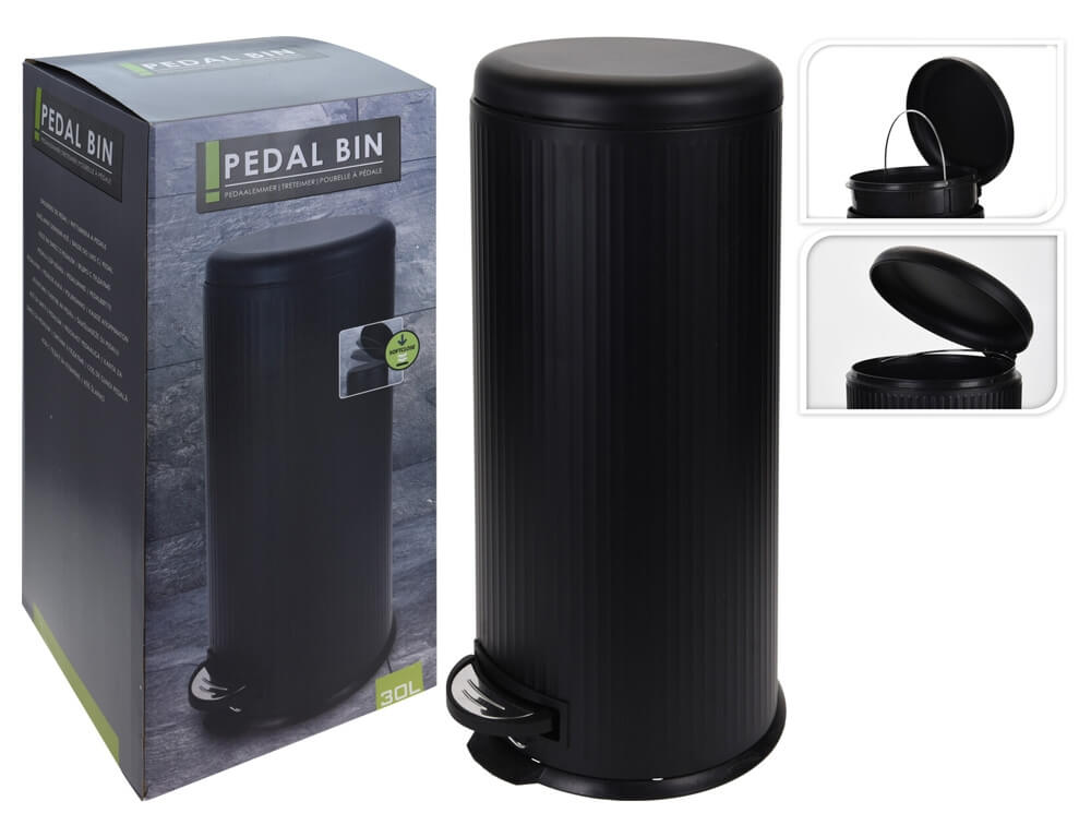 Περιποιηθείτε την κουζίνα, το γραφείο ή άλλο χώρο σας με αυτόν τον όμορφο μαύρο ματ κάδο με πεντάλ. Ο κάδος πεντάλ είναι αρκετά ευρύχωρος (30 λίτρα) και είναι ιδανικός για χρήση σε νοικοκυριό με περισσότερα από 2 άτομα. Πετάξτε σκουπίδια ή χαρτί σε αυτό. Οι διαστάσεις του κάδου είναι 30 x 64 cm. Ο κάδος απορριμμάτων ανοίγει με το πάτημα του πεντάλ. Ασφαλές και υγιεινό. Έτσι, δεν χρειάζεται να αγγίζετε τον κάδο απορριμμάτων για να πετάξετε κάτι και επίσης δεν χρειάζεται να ανησυχείτε για τις δυσάρεστες οσμές στο σπίτι σας.
