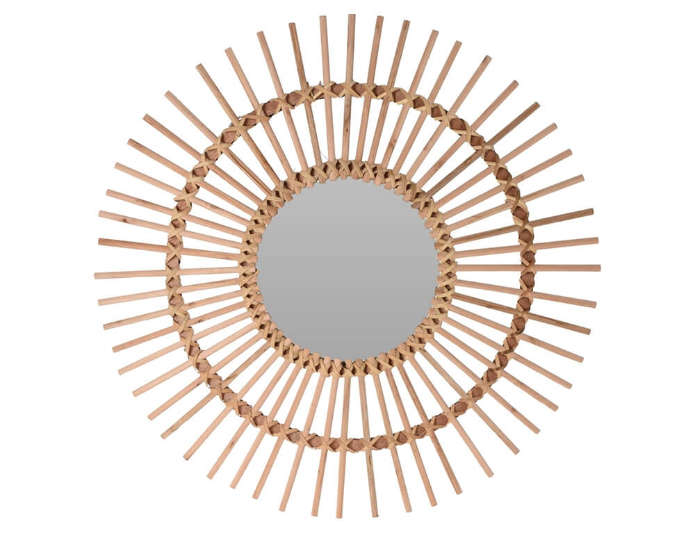 Οι καθρέπτες αποτελούν αναπόσπαστο κομμάτι της διακόσμησης ενός σπιτιού. Ο καθρέπτης τοίχου σε στρογγυλό σχήμα είναι ιδανικός για τοποθέτηση στο υπνοδωμάτιο, το χολ, το γραφείο ή σε όποιον άλλο χώρο σας είναι απαραίτητος. Μπορεί να λειτουργήσει ως χρηστικό και ως διακοσμητικό στοιχείο στο χώρο σας. Το πλαίσιο του είναι κατασκευασμένο από ξύλο σε φυσική απόχρωση και θα δώσει μια μοναδική boho νότα στο χώρο σας.
