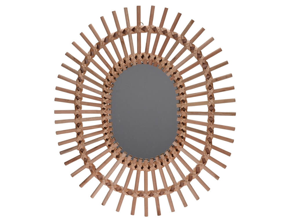 Οι καθρέπτες αποτελούν αναπόσπαστο κομμάτι της διακόσμησης ενός σπιτιού. Ο καθρέπτης τοίχου σε στρογγυλό σχήμα είναι ιδανικός για τοποθέτηση στο υπνοδωμάτιο, το χολ, το γραφείο ή σε όποιον άλλο χώρο σας είναι απαραίτητος. Μπορεί να λειτουργήσει ως χρηστικό και ως διακοσμητικό στοιχείο στο χώρο σας. Το πλαίσιο του είναι κατασκευασμένο από ξύλο σε φυσική απόχρωση και θα δώσει μια μοναδική boho νότα στο χώρο σας.