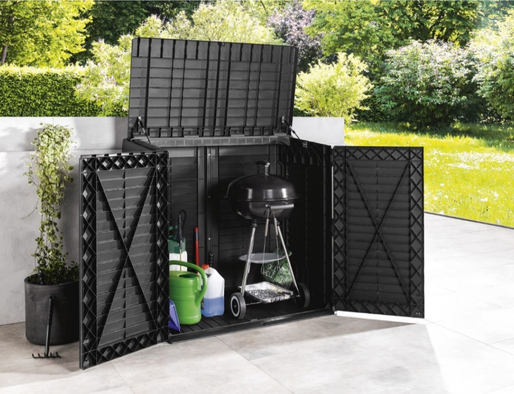 Μπαούλο Αποθήκευσης Κήπου με 2 Πόρτες, Χωρητικότητα 780lt και Διαστάσεις 117x74x110cm - Μαύρο