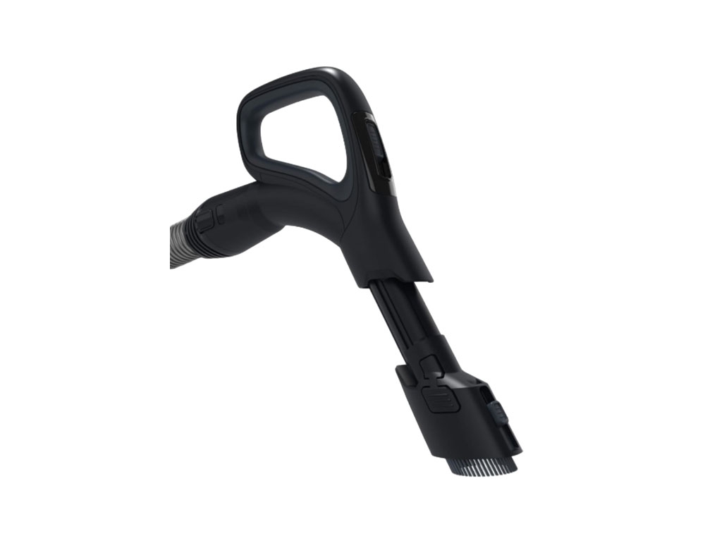 - Λαβή προηγμένης τεχνολογίας με εσωτερικό μαλακό λάστιχο, ενσωματωμένα εξαρτήματα (βούρτσα για ξεσκόνισμα, εργαλείο επίπλων και εργαλείο χαραμάδων)