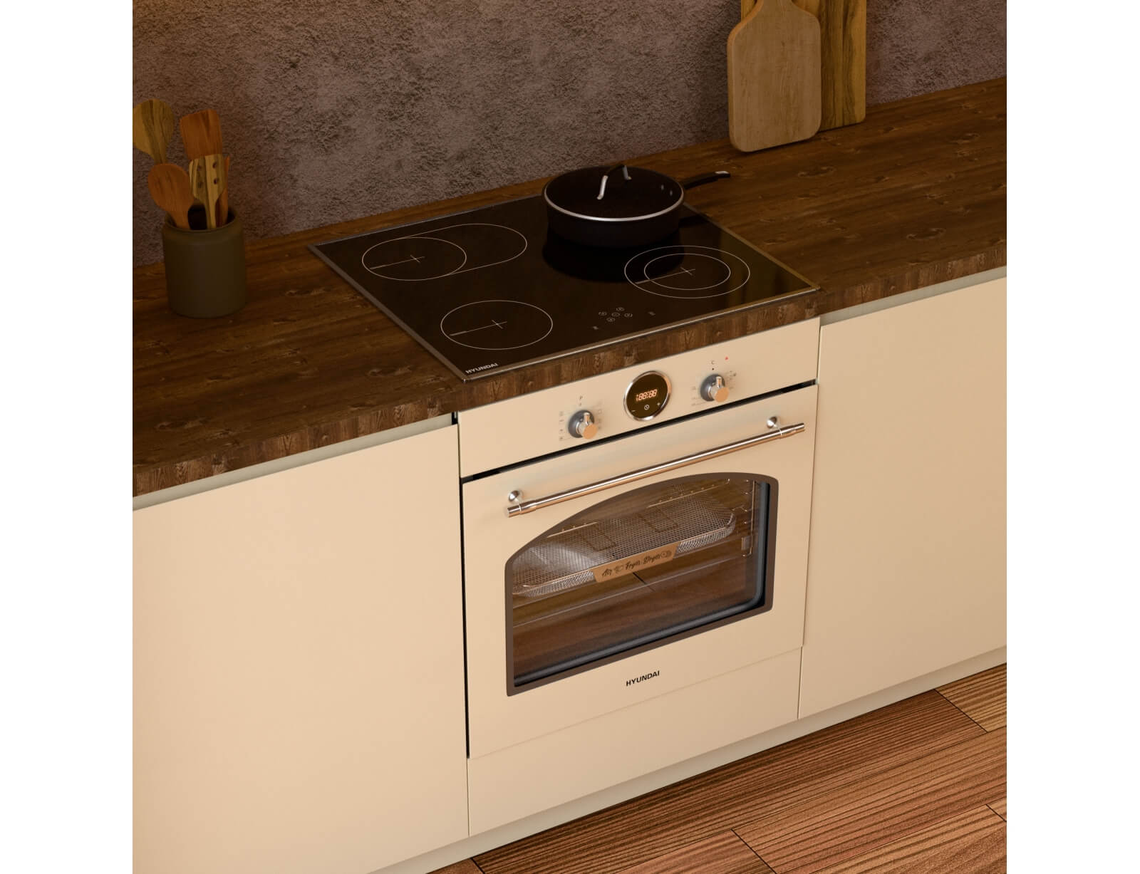 Εντοιχιζόμενος φούρνος Hyundai HBIOR24S-60BZ με χωρητικότητα 60 λίτρα, ενεργειακή κλάση Α και 9 λειτουργίες μαγειρέματος.