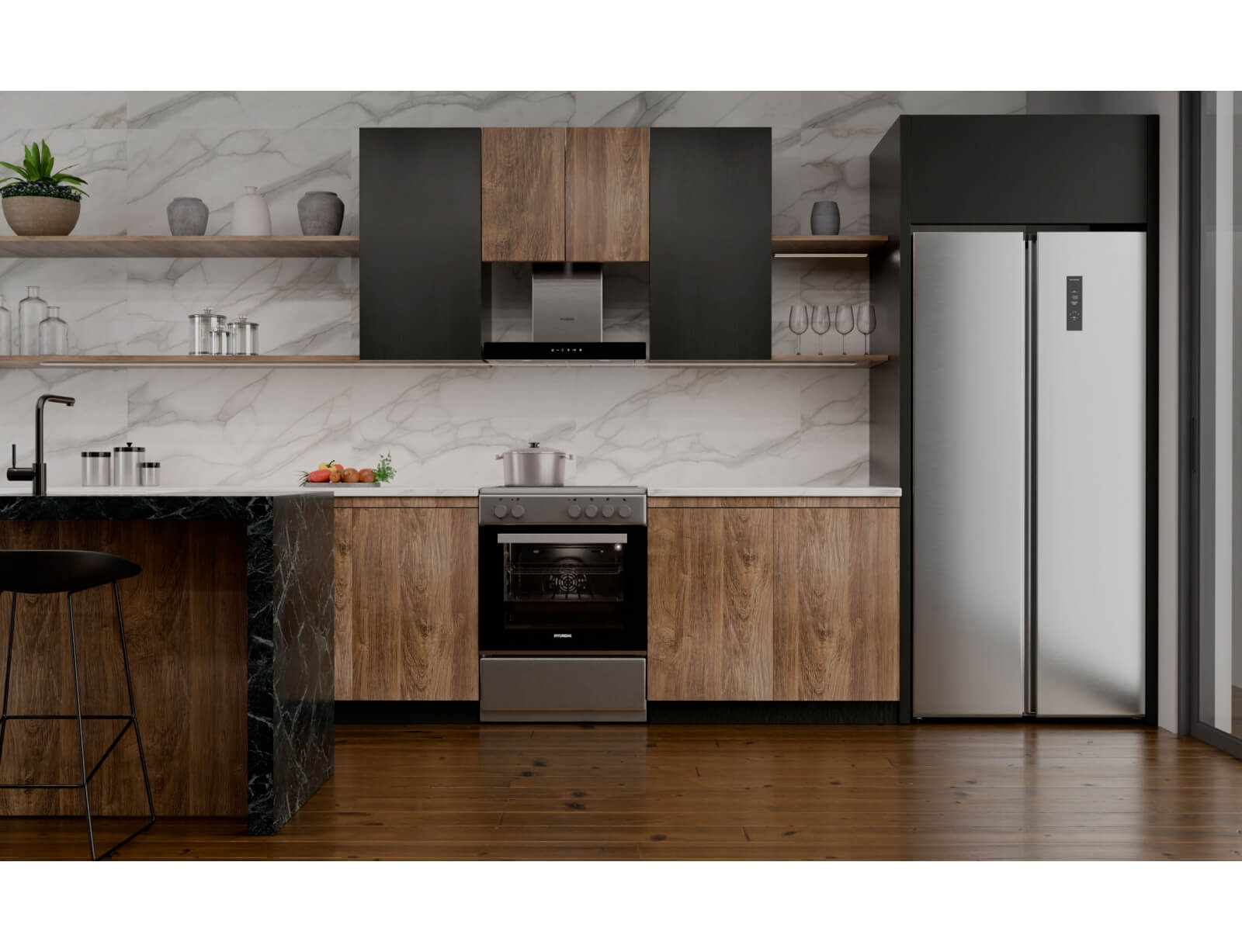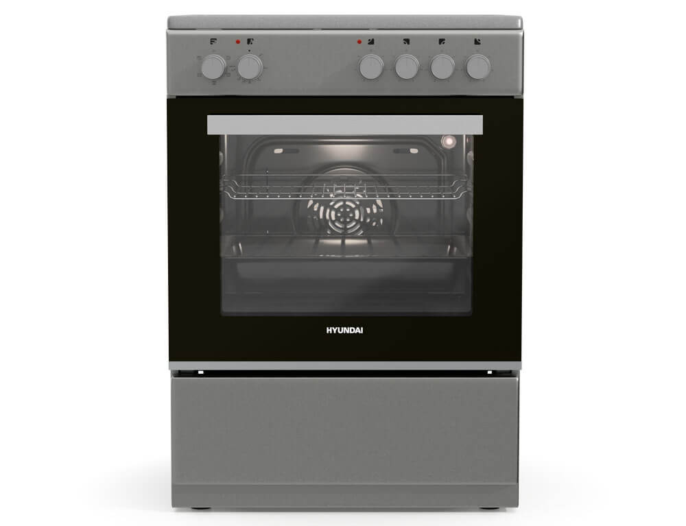 Κουζίνα Hyundai HCVC24V-7260VS/S με μεγάλη χωρητικότητα φούρνου 69 λίτρα, ενεργειακή κλάση Α, 4 κεραμικές εστίες μαγειρέματος και 5 λειτουργίες ψησίματος.